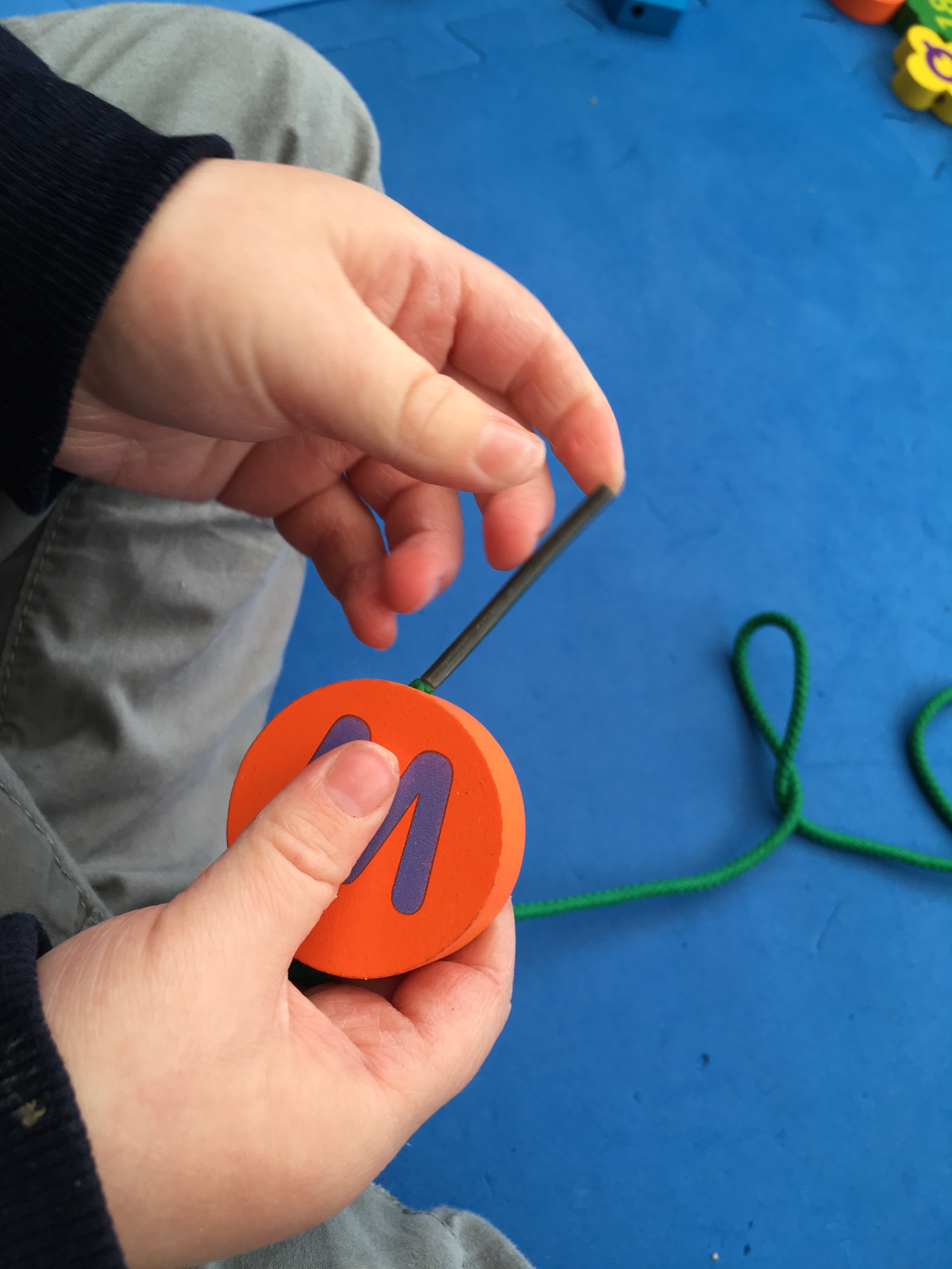 I’m a big fan of threading beads as a way of developing fine motor skills. And I particularly love these jumbo wooden beads by Toys of Wood Oxford.
