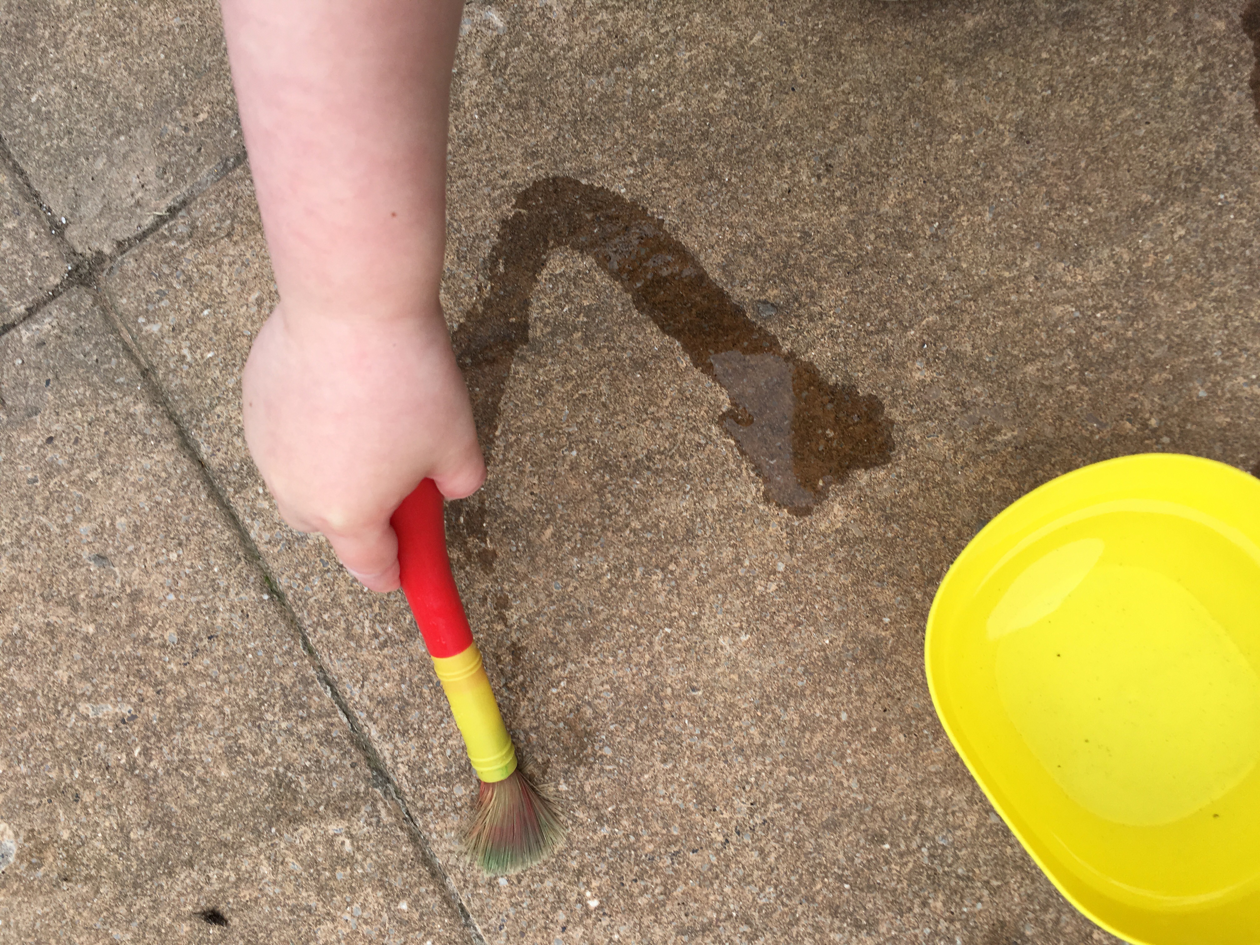 - Outdoor fun– for a child that loves to be active and outside, drawing and colouring inside at a table can seem like a chore. We tried chalk and ‘painting’ the patio with water on a hot days.
