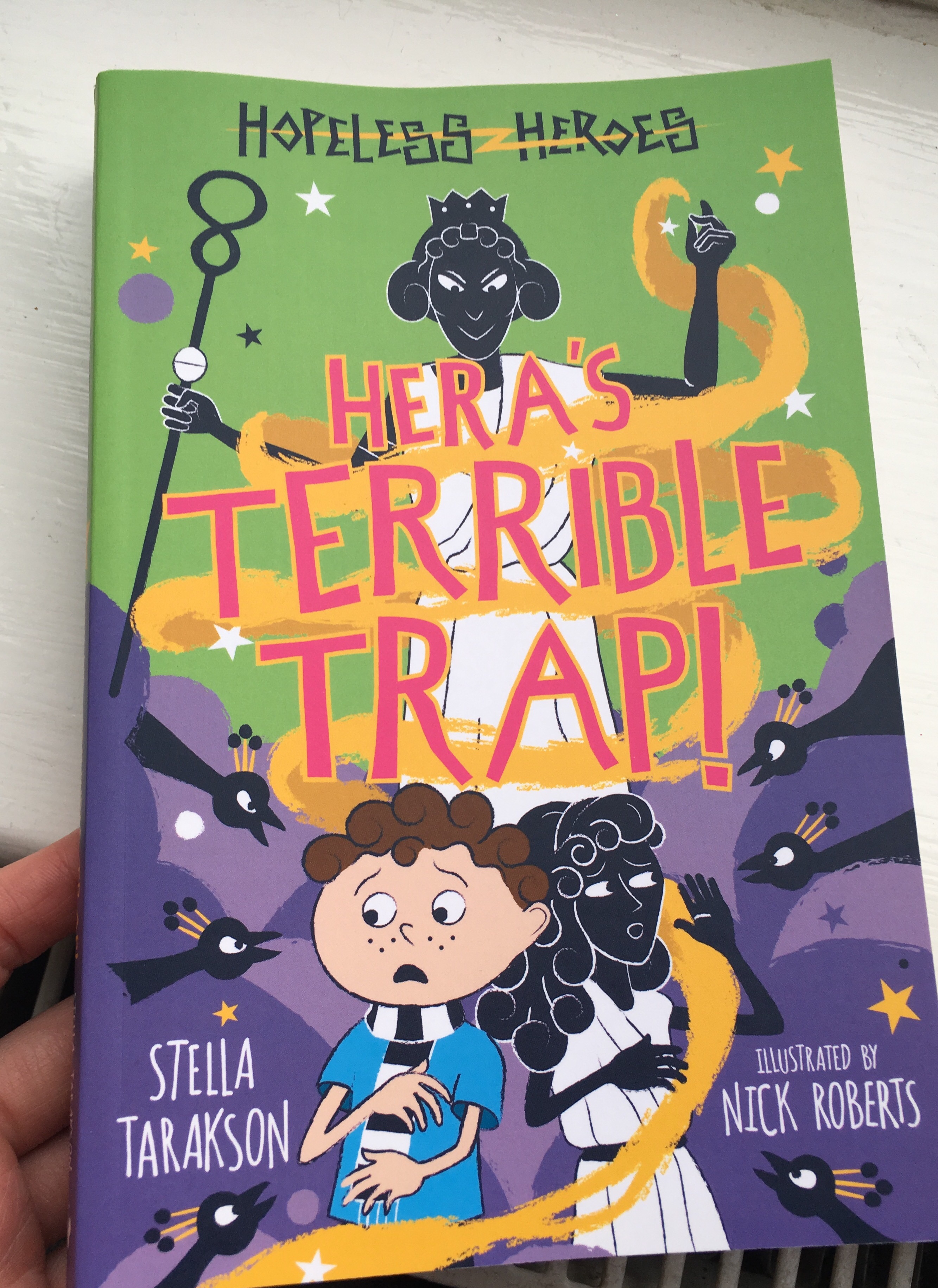 We’ve been reading two books from the Hopeless Heroes series by Stella Tarakson: Hera’s Terrible Trap and Here Comes Hercules