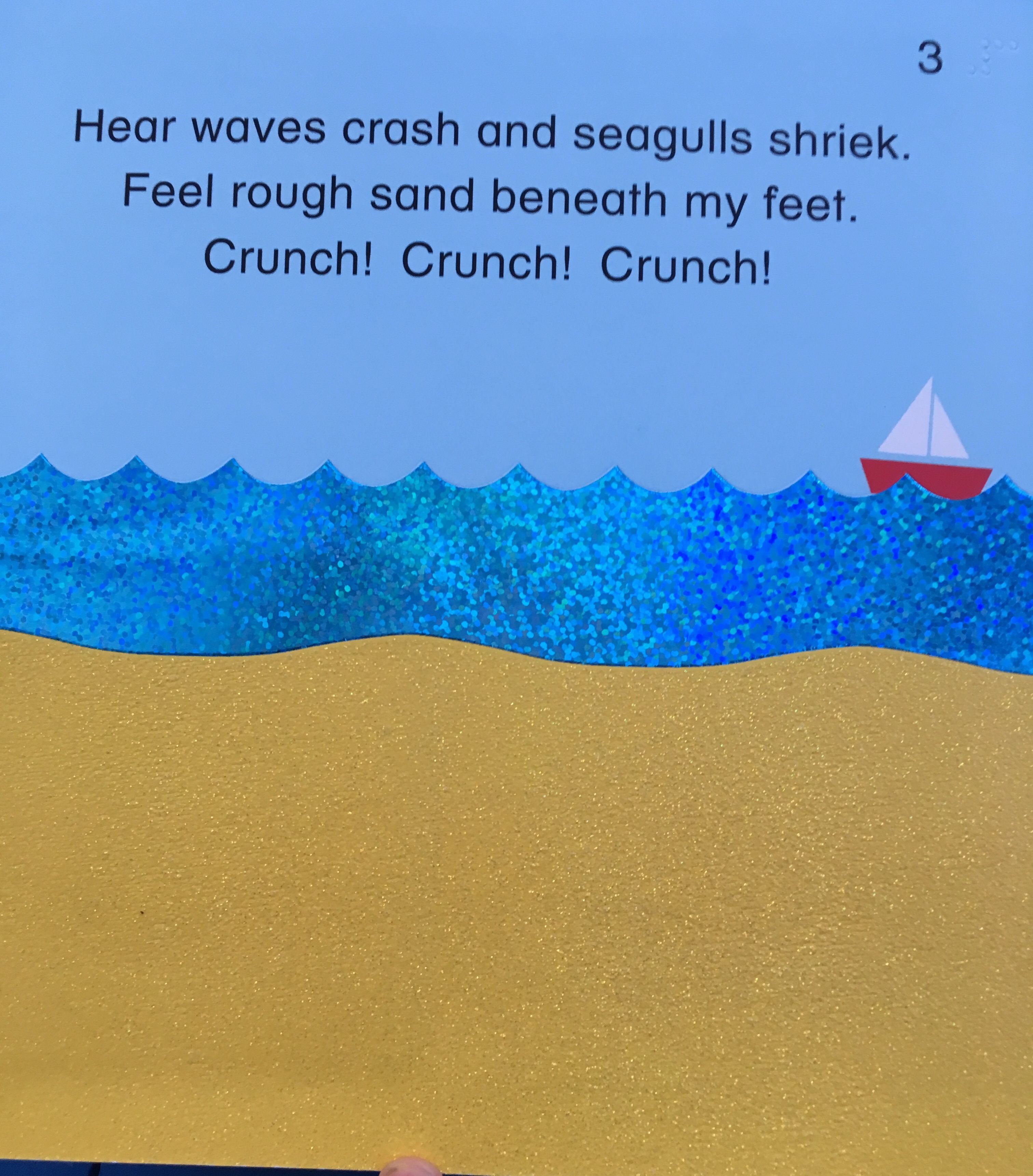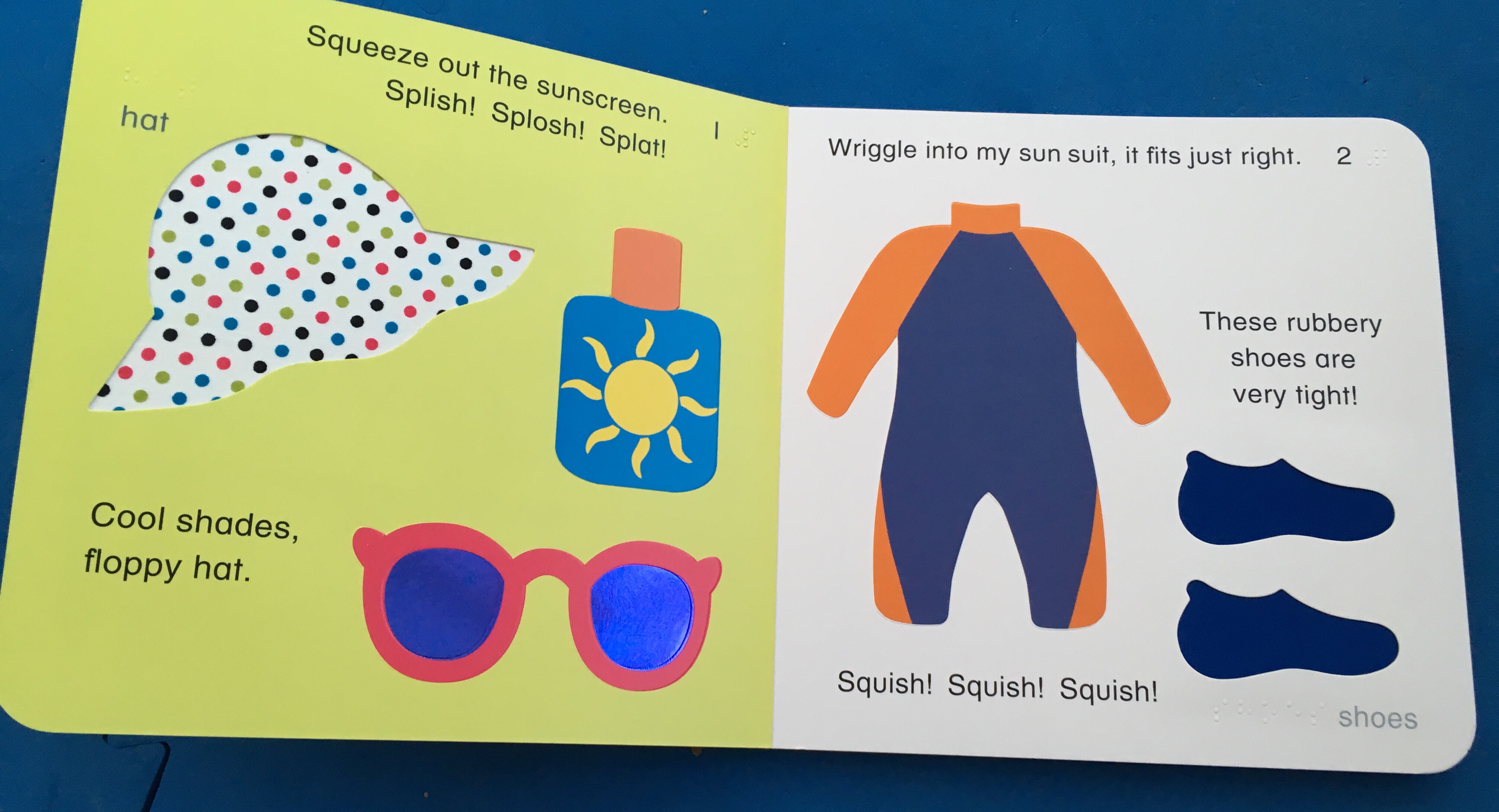 […] Off to the Beach– For those that read our blog regularly, you may remember us reviewing this book a while ago and singing its praises: “I can’t stress enough how fantastic the tactile elements (touch and feel sections) in these two books are. They are absolutely incredible! In Off to the Beach there’s everything needed to fully imagine a day at the beach, including squishy wetsuits, shiny sunglasses and rough sand to pretend to jump in“ continue reading our read our full review here. […]