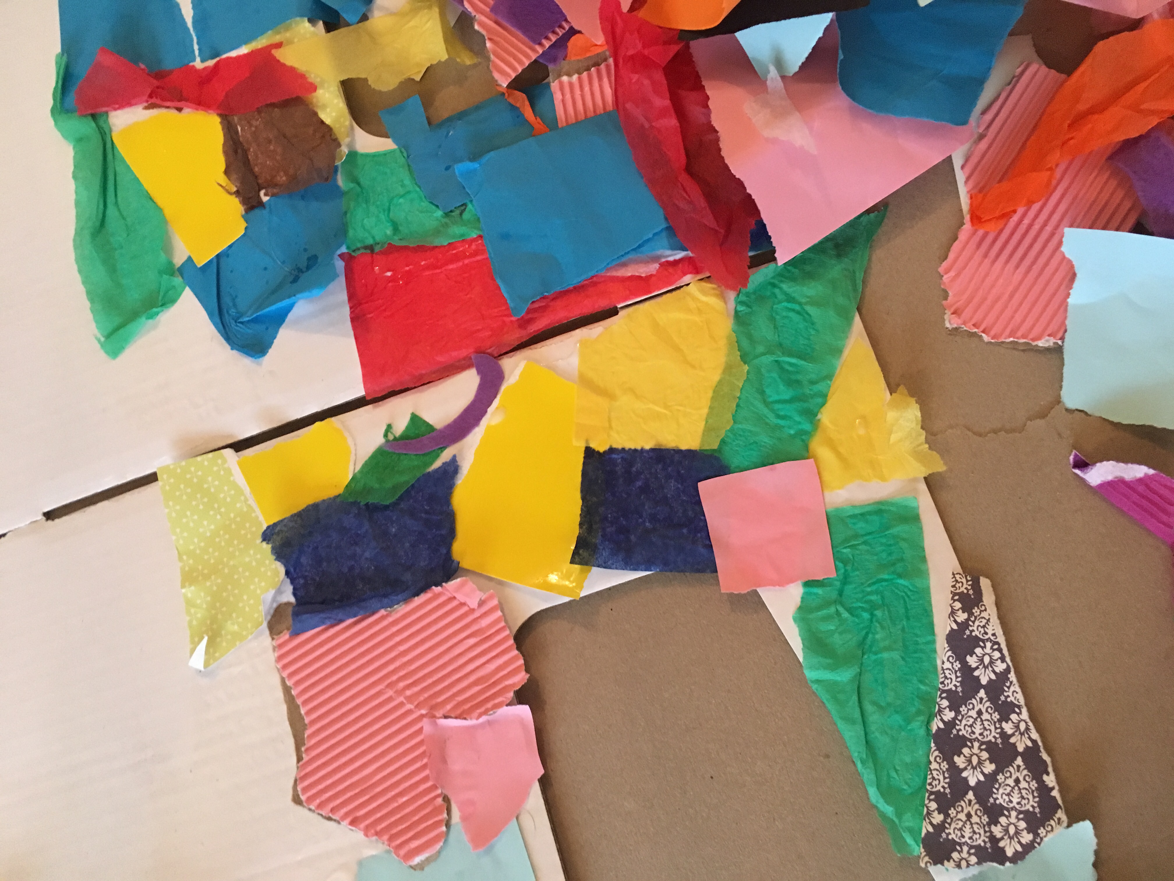 - We collected (a lot!) of different paper and card: scrap tissue paper, crepe paper, paper, wrapping paper etc. A great way to use up all the left over, scrap paper.