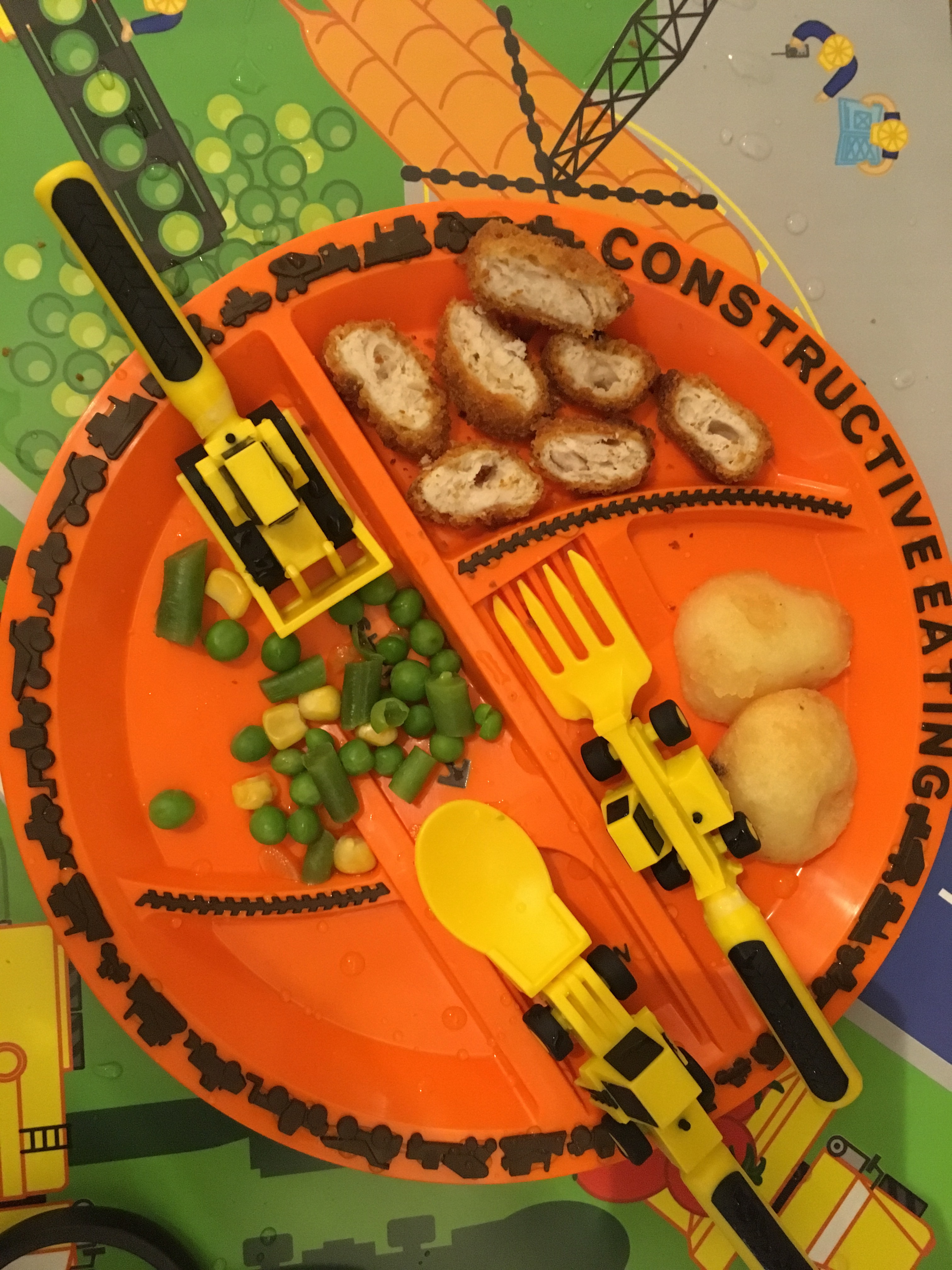 - Fun– Meal times should be enjoyable and this plate and utensil set has certainly made ours more fun. We’ve loved referring to the utensils by their names ‘Front loader Spoon’ and ‘Forklift Fork’..it’s had my children in fits of giggles. What I particularly love is that although it’s great fun, it’s not fun in a distracting way. In fact, it’s quite the opposite, I’ve noticed an increase in attention and concentration of my child when using them.