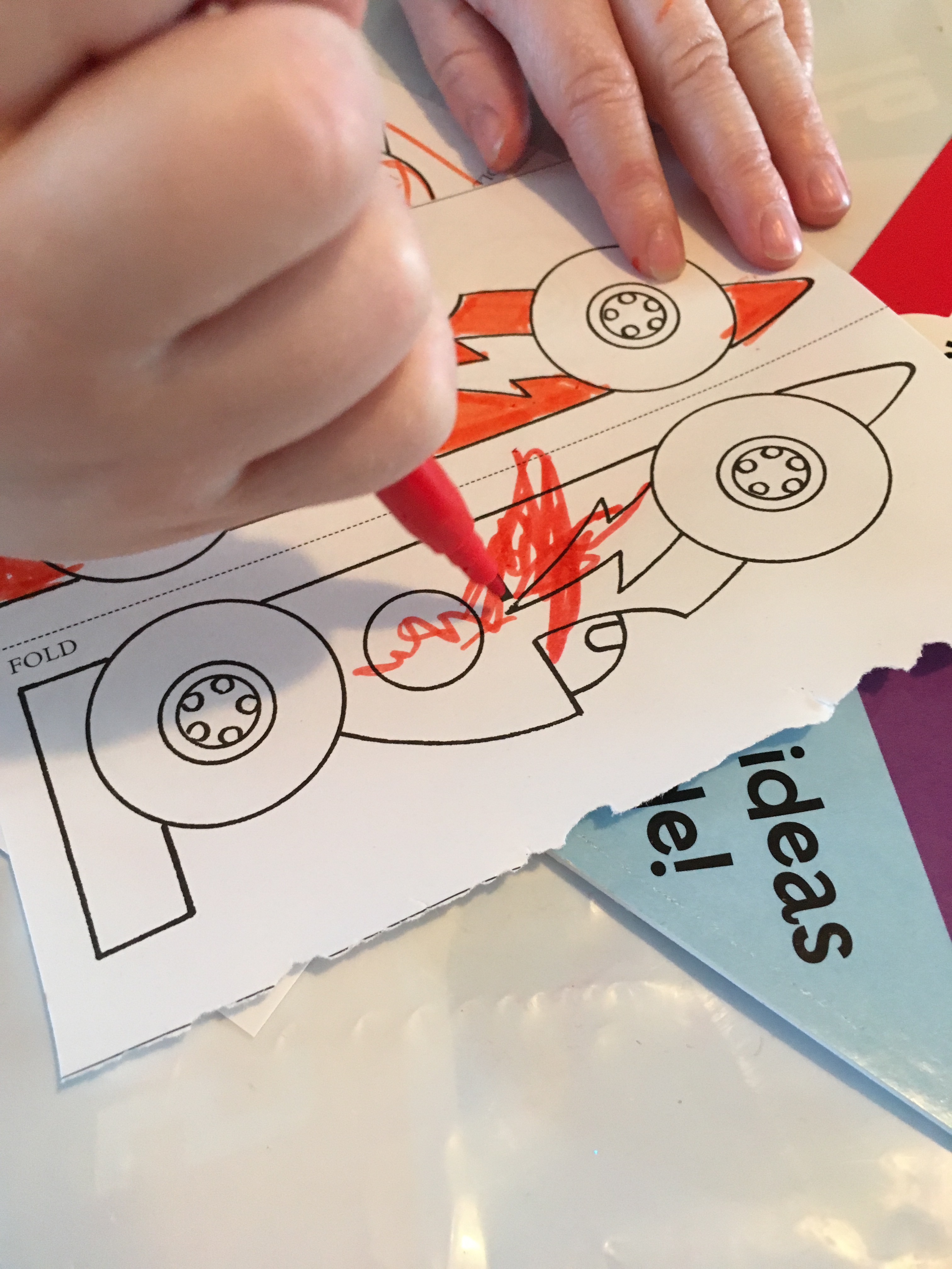 - Encourages Colouring– I’ve written a lot about encouraging colouring and drawing on my blog (see here) as there are many children that simply don’t enjoy putting pen to paper. We found the activities in this book such as making cars were a brilliant incentive to get children wanting to practise colouring.