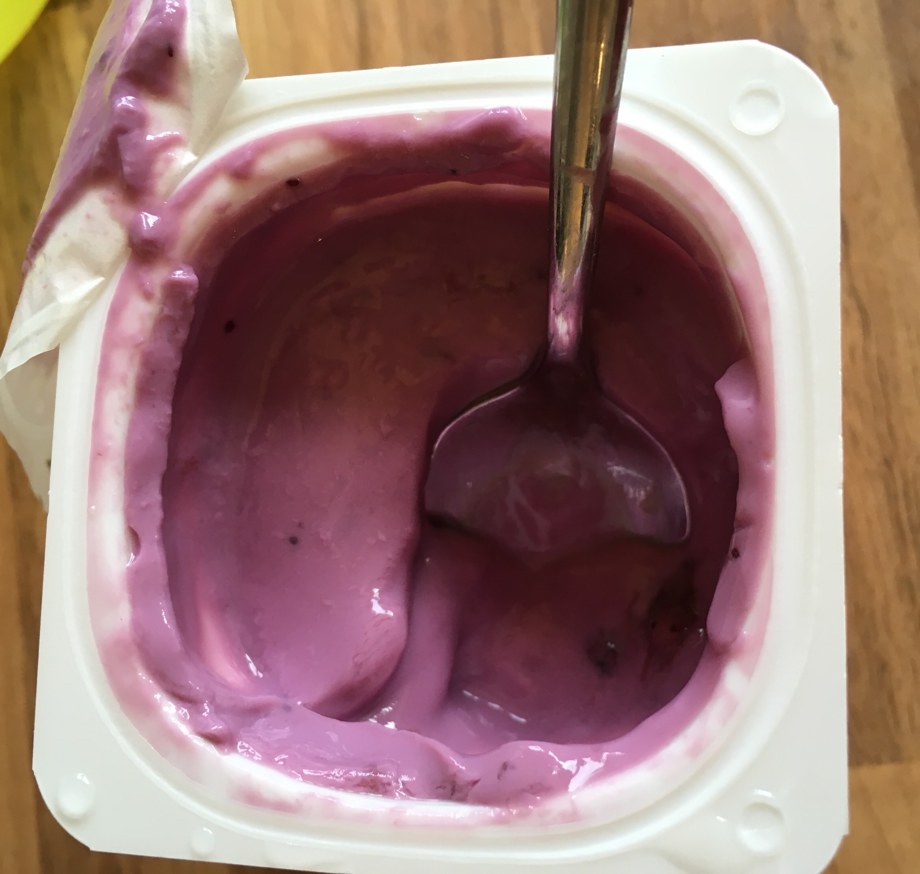 4.Leave to cool a little bit and (adult) pour into the yoghurt pot. We found by putting the yoghurt pot in a jug of cold water it set really fast and stopped leaks of the lard out of the hole at the bottom of the pot.