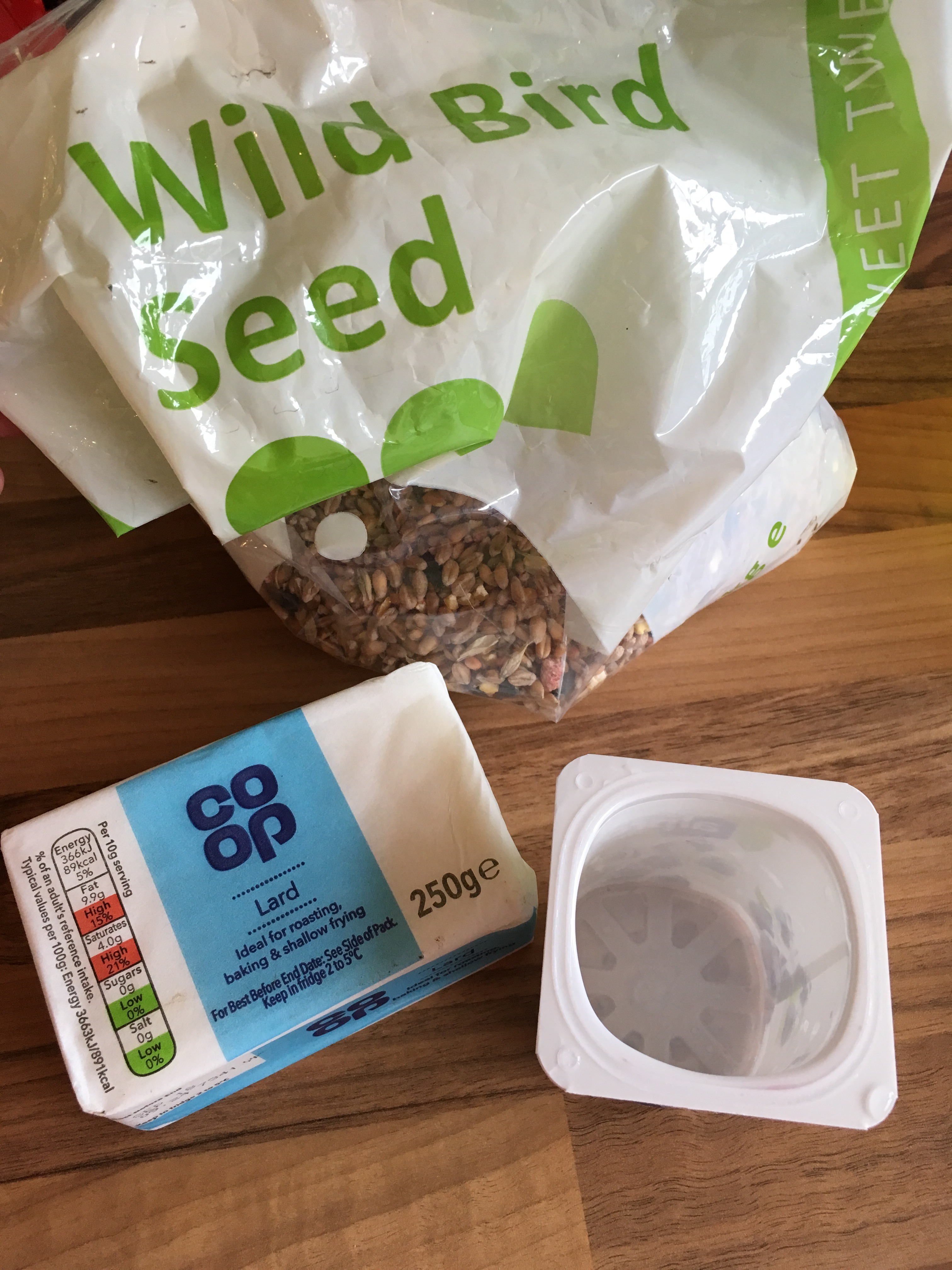 This week we’ve been making bird feeders for the garden, a really simple idea that’s great fun, beneficial to garden wildlife and cheap to do.