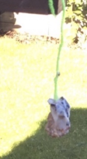 5.Once set, cut away the yoghurt pot carefully (it’s a bit tricky so grown ups do this bit) and hang your bird feeder!
