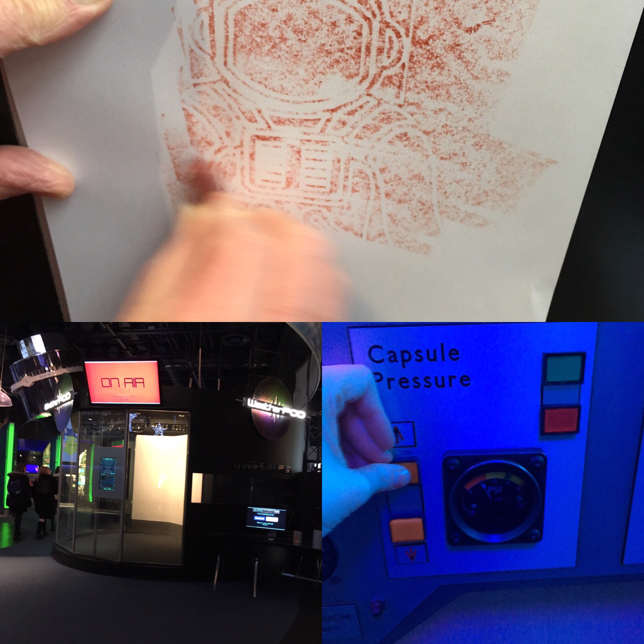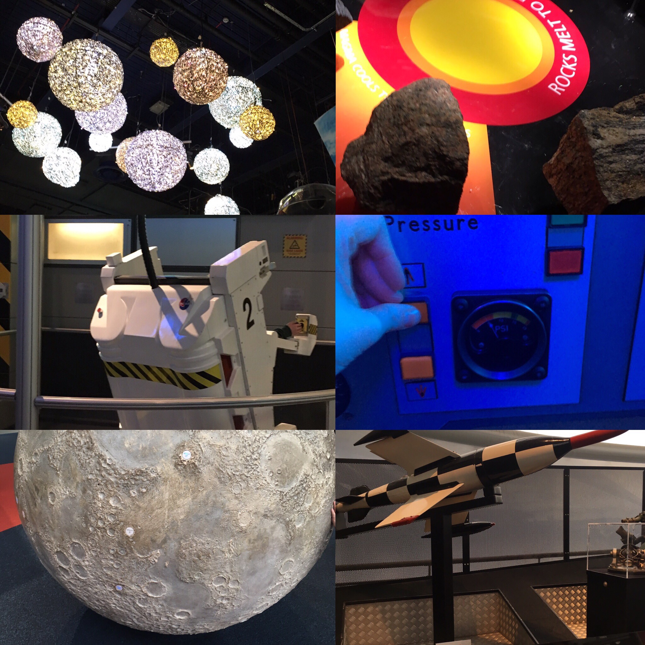 - Awe Inspiring– There was so much to see, starting with the huge Satellite suspended from the ceiling in the foyer! We enjoyed spotting and discussing the amazing space related items throughout the venue; including the space suits, planet models, rockets and even a real piece of the moon!