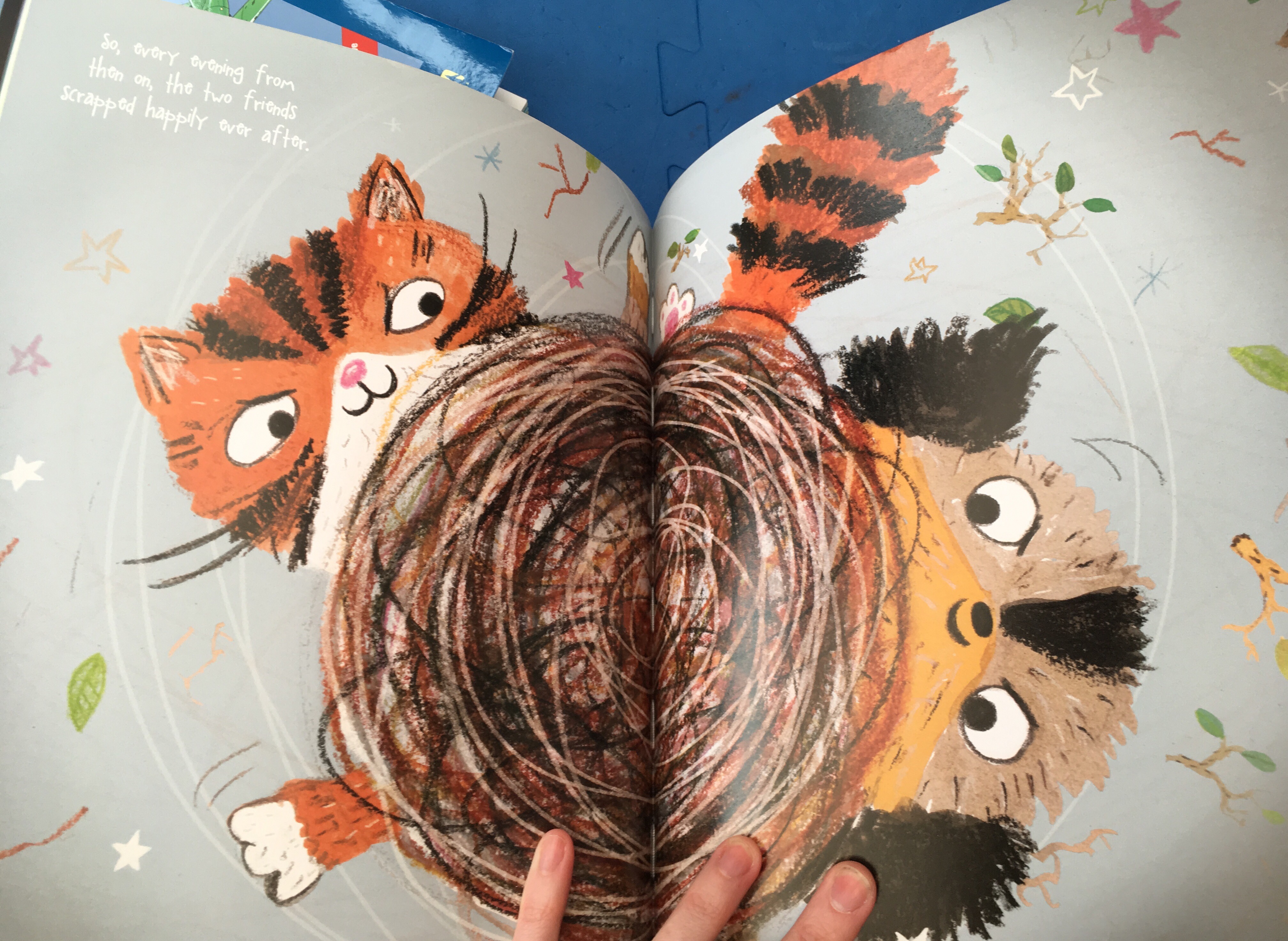 - Unique! I loved that this book wasn’t just another book about two animals being friends. Instead Cat and Dog have a Love Hate relationship and enjoy scrapping!