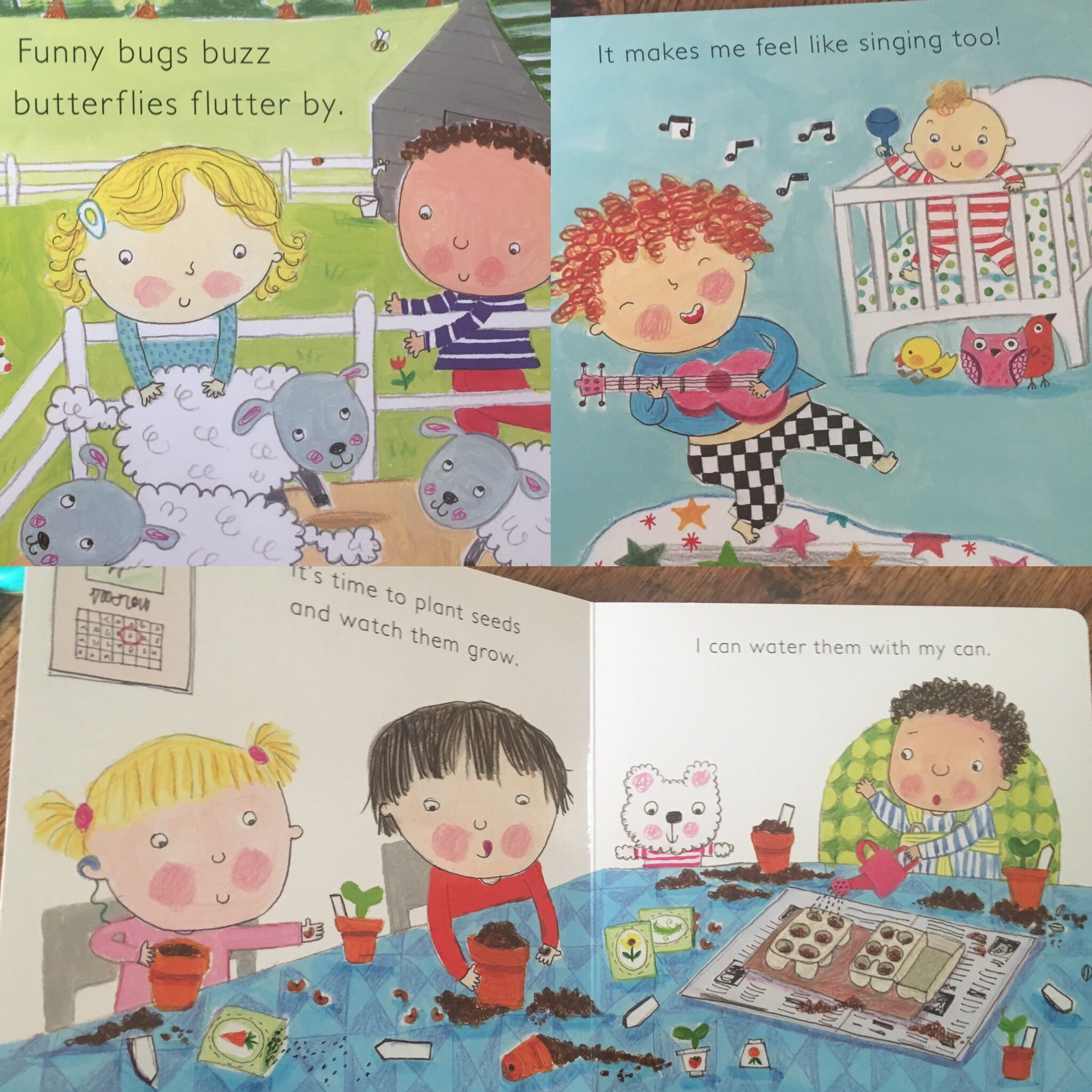 Gorgeous illustrations of children enjoying spring with beautiful descriptions of relatable spring activities. We’ve read this book over and over again. It’s also inspired us to plant seeds and visit farms!