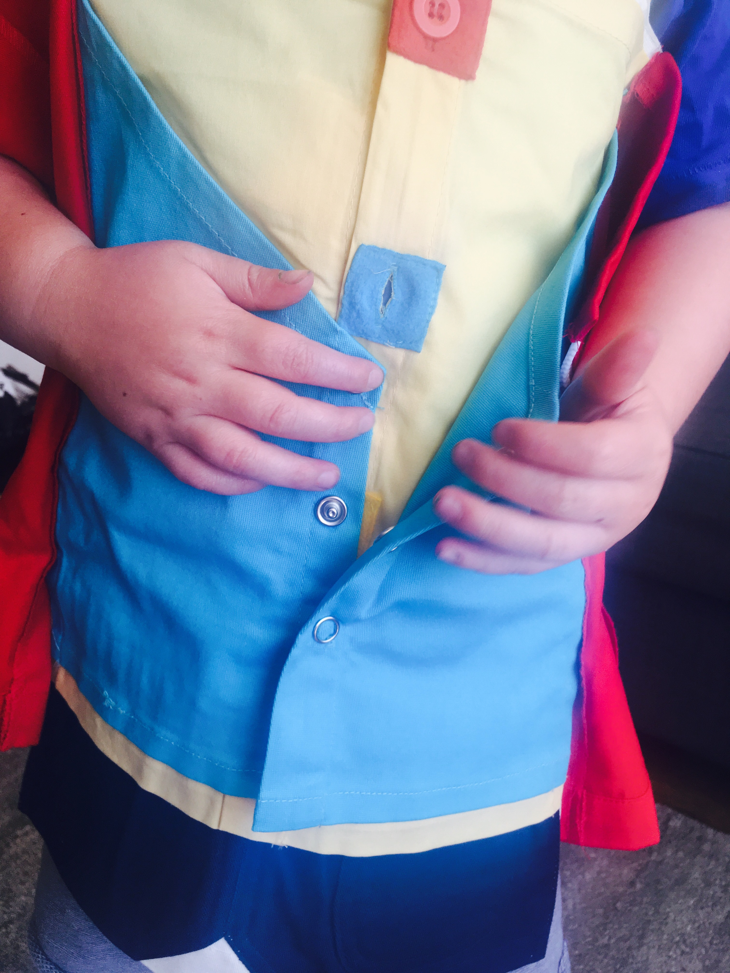 - Aid development of Fine Motor Skills– In my opinion, it’s not just great resource for learning to do fastenings. It’s also brilliant for developing fine motor skills in general. By having a go at the buttons, zips etc children are building the tiny muscles in their hands and fingers that are important for other tasks such as learning to write, hold a knife and fork correctly etc.
