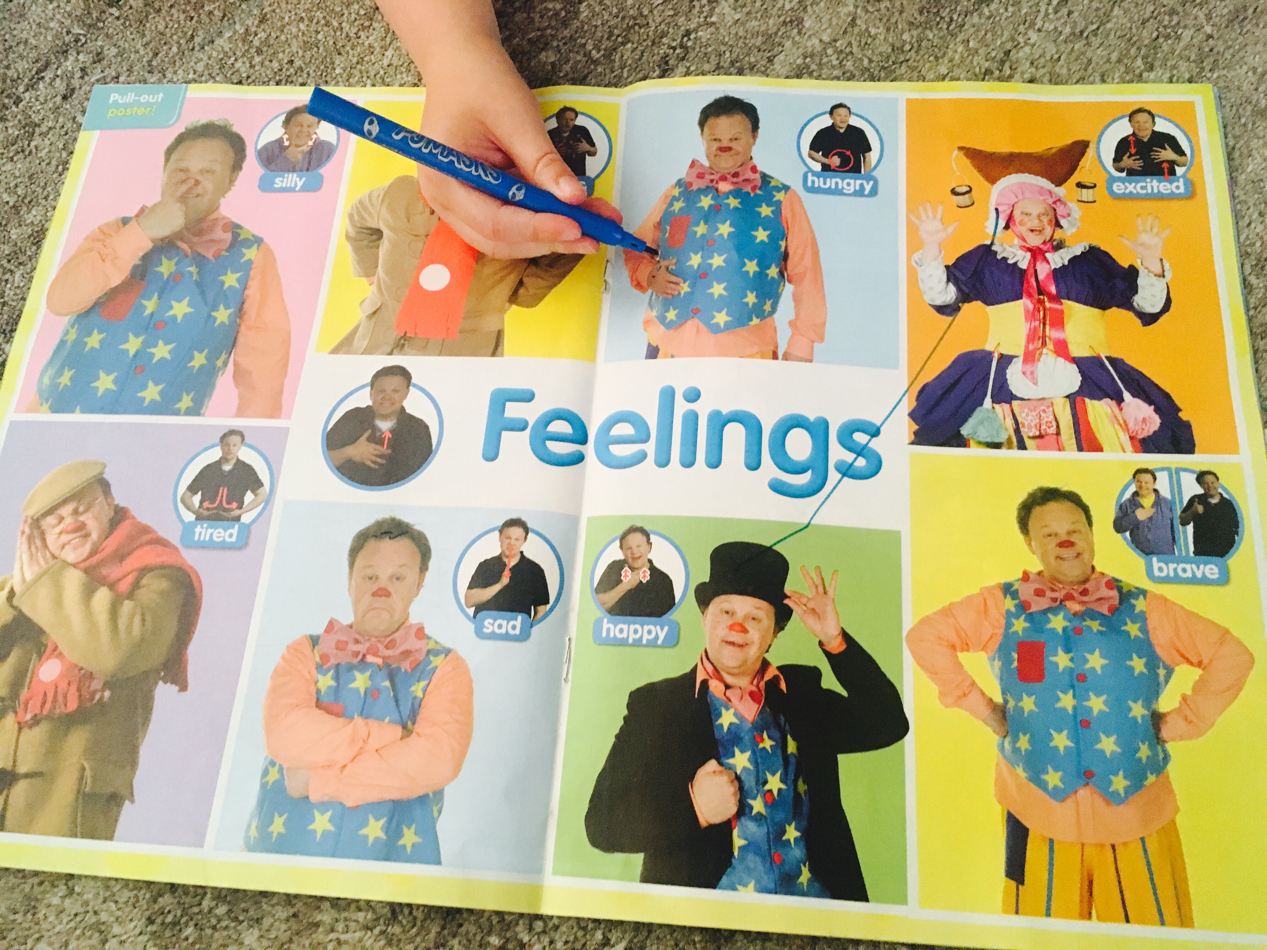–Feelings- Distinguising and explaining feelings can be a particularly challenging task for many children. This colourful page helps children to understand the main emotions people feel and includes the makaton signs for each of them.
