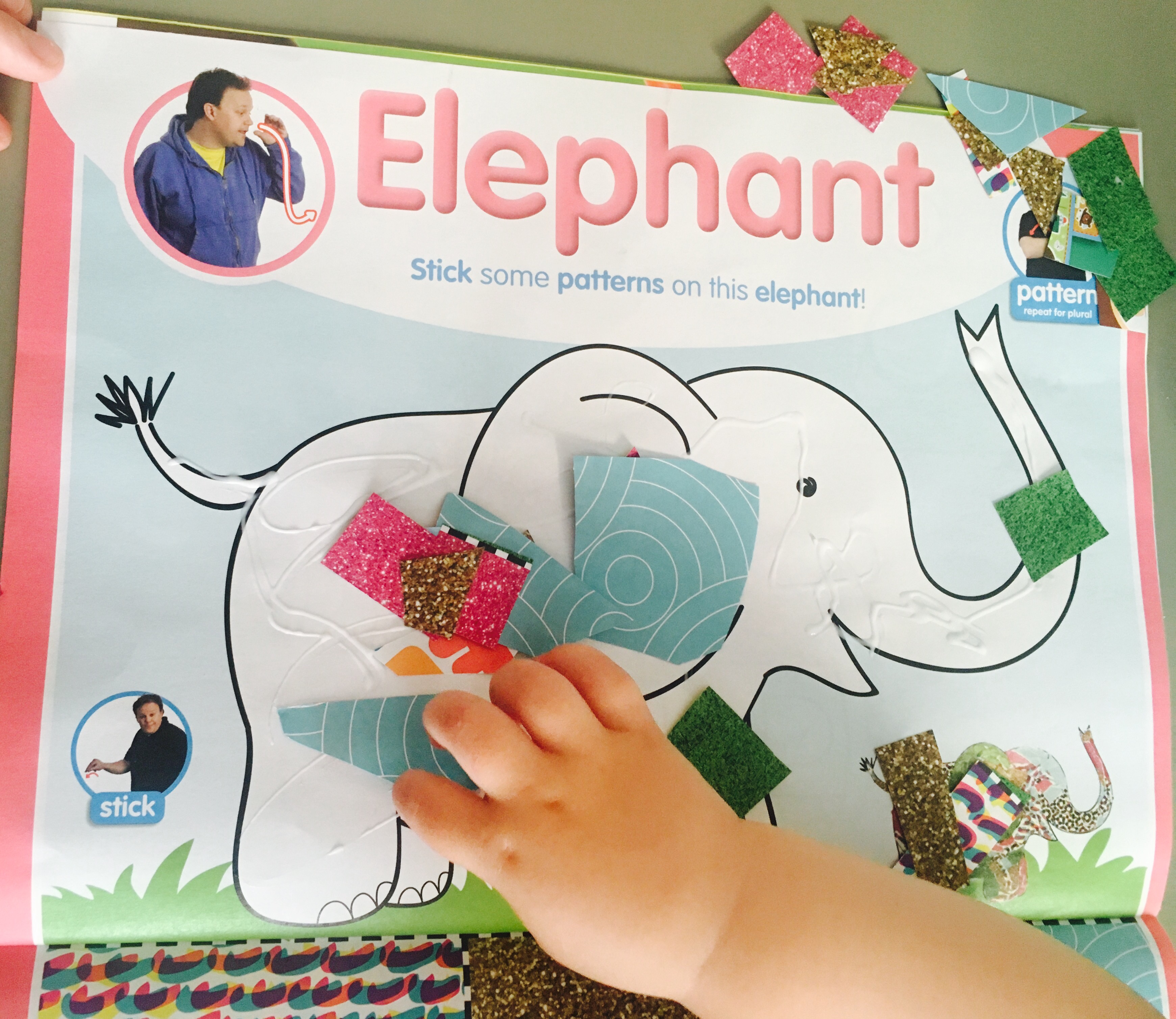 Favourite Activity: Our favourite activity this time was the beautiful elephant Collage activity. Collages develop a number of skills and children often take such pride in their finished creations. We love that the magazine supplies a page of different coloured/patterned paper to cut out for the collage- meaning you don’t have to go searching for your own paper!