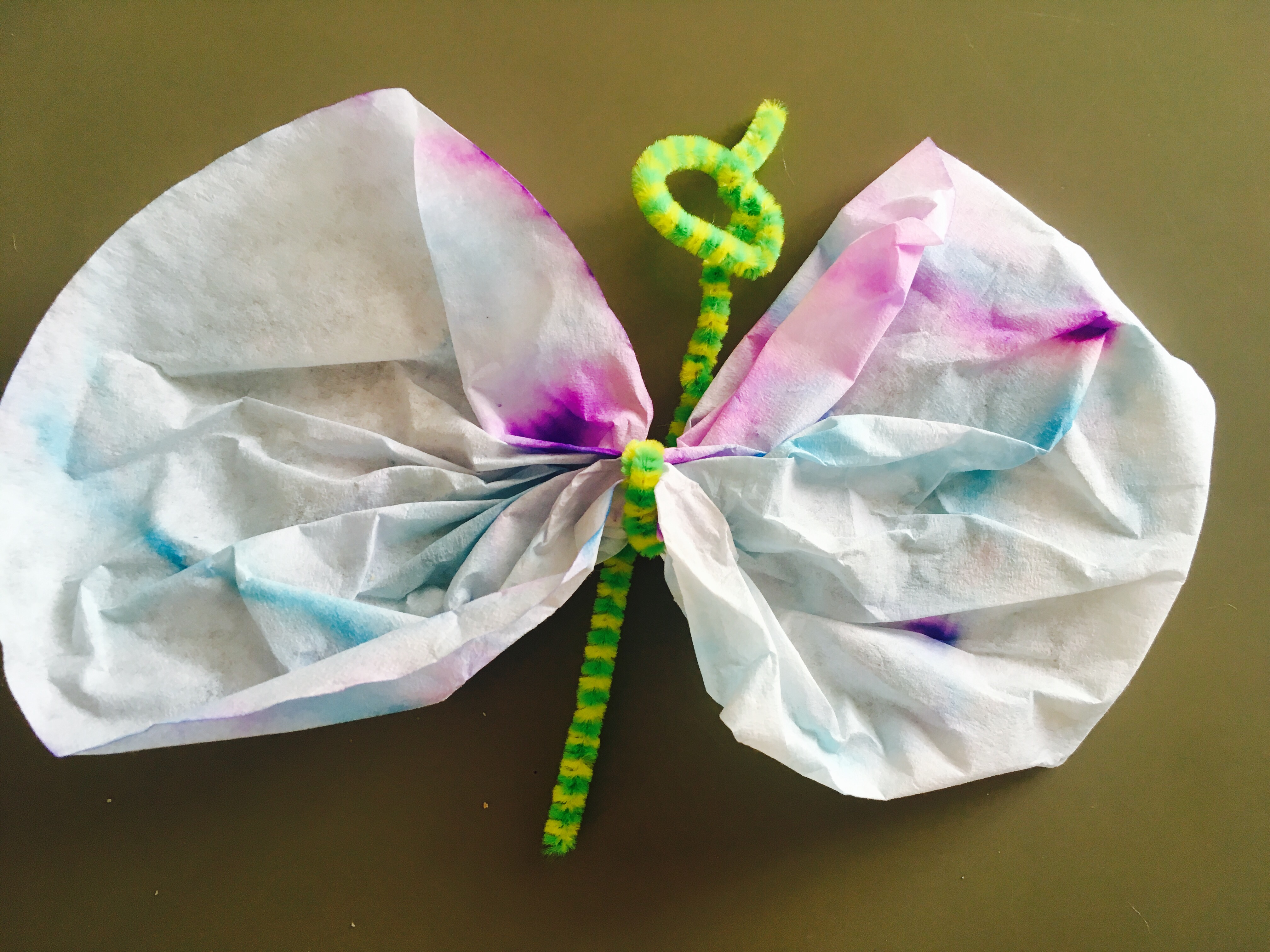 Learnt how to create stunning butterflies from pipe cleaner, coffee filters, felt tips and squirted water!
