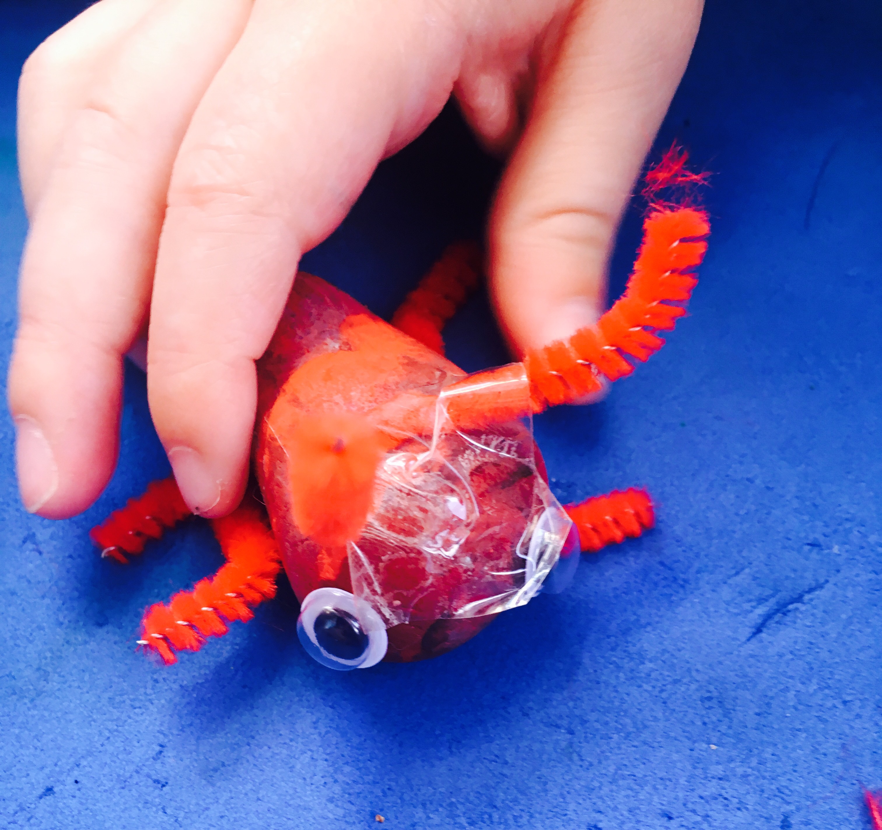 3. Cut, tape or glue pipe cleaners underneath and bend to be the legs