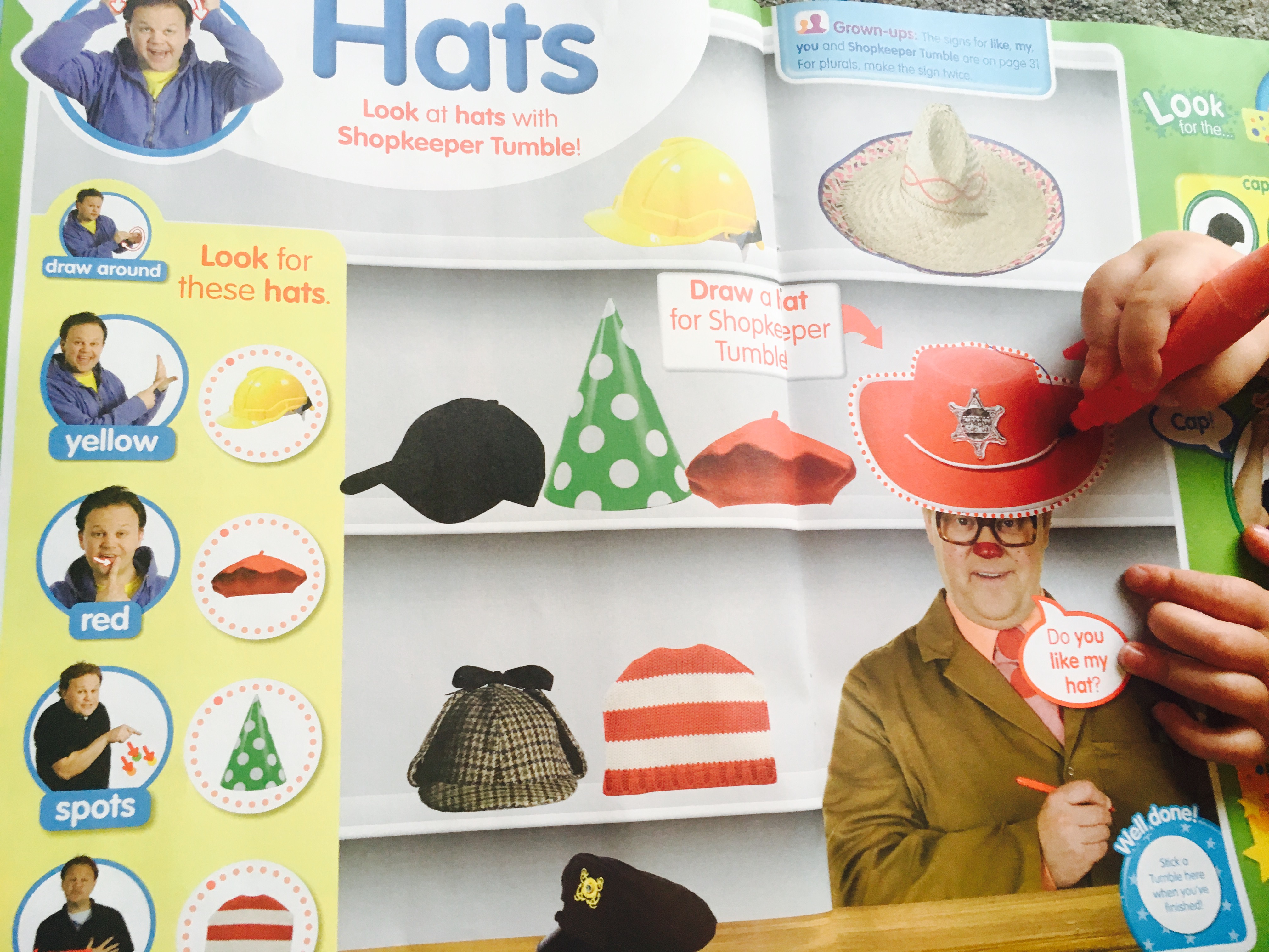 …and just to add a bit of humour there’s a funny, sticker page all about getting Mr Tumble ready by choosing his hat! My children loved this!