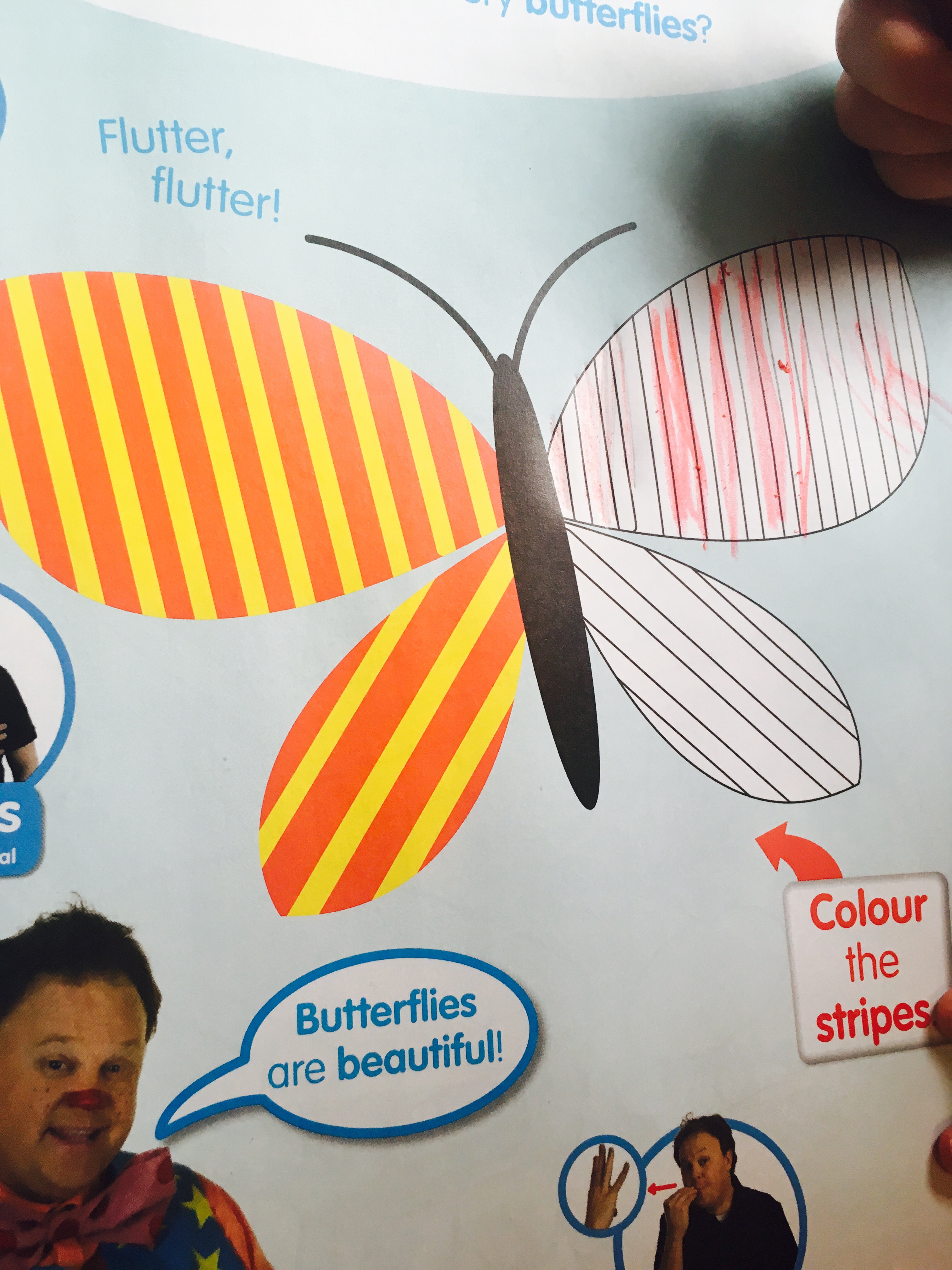 – Colouring– We were very impressed with this month’s edition for helping children develop their colouring skills and in turn their fine motor skills. In addition to the usual colouring pages there were also pages like this butterfly colouring page that teaches children specific colouring skills.
