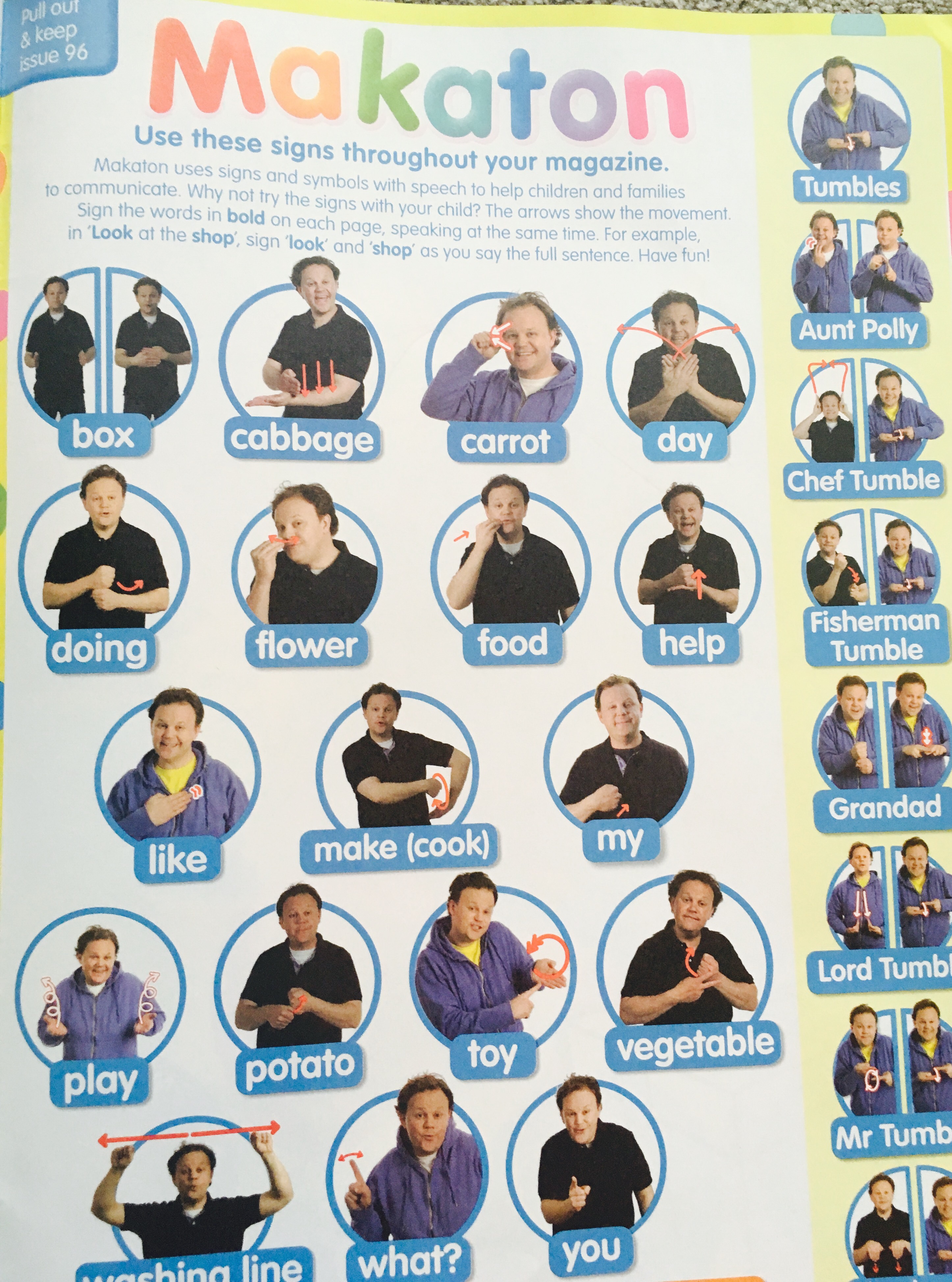 – Makaton Signs: The Mr Tumble Something Special Magazines are fantastic for teaching and learning Makaton signs. They are brilliant for parents too- with written guidance and photographs of Justin demonstrating the key makaton signs for each magazine.