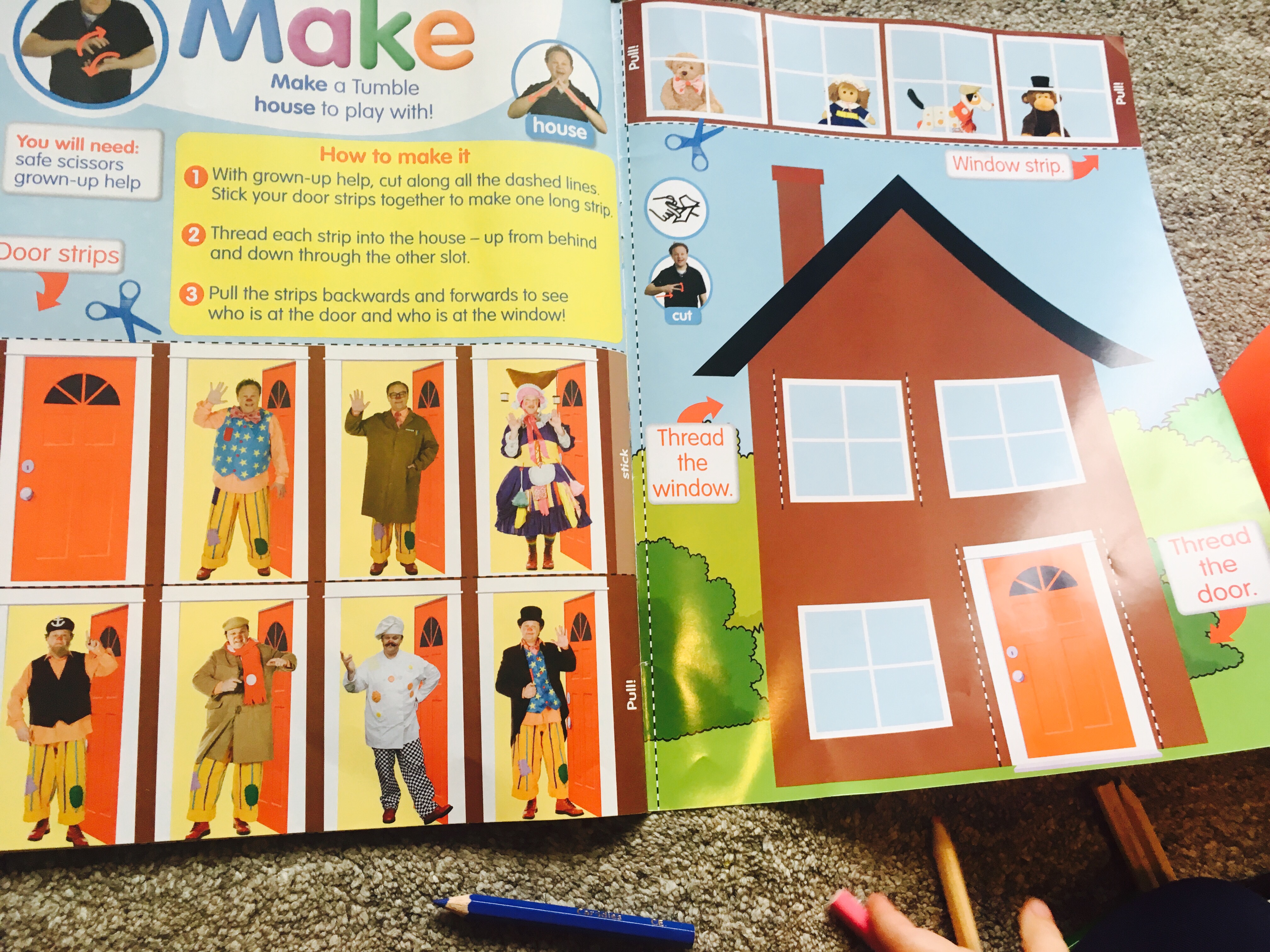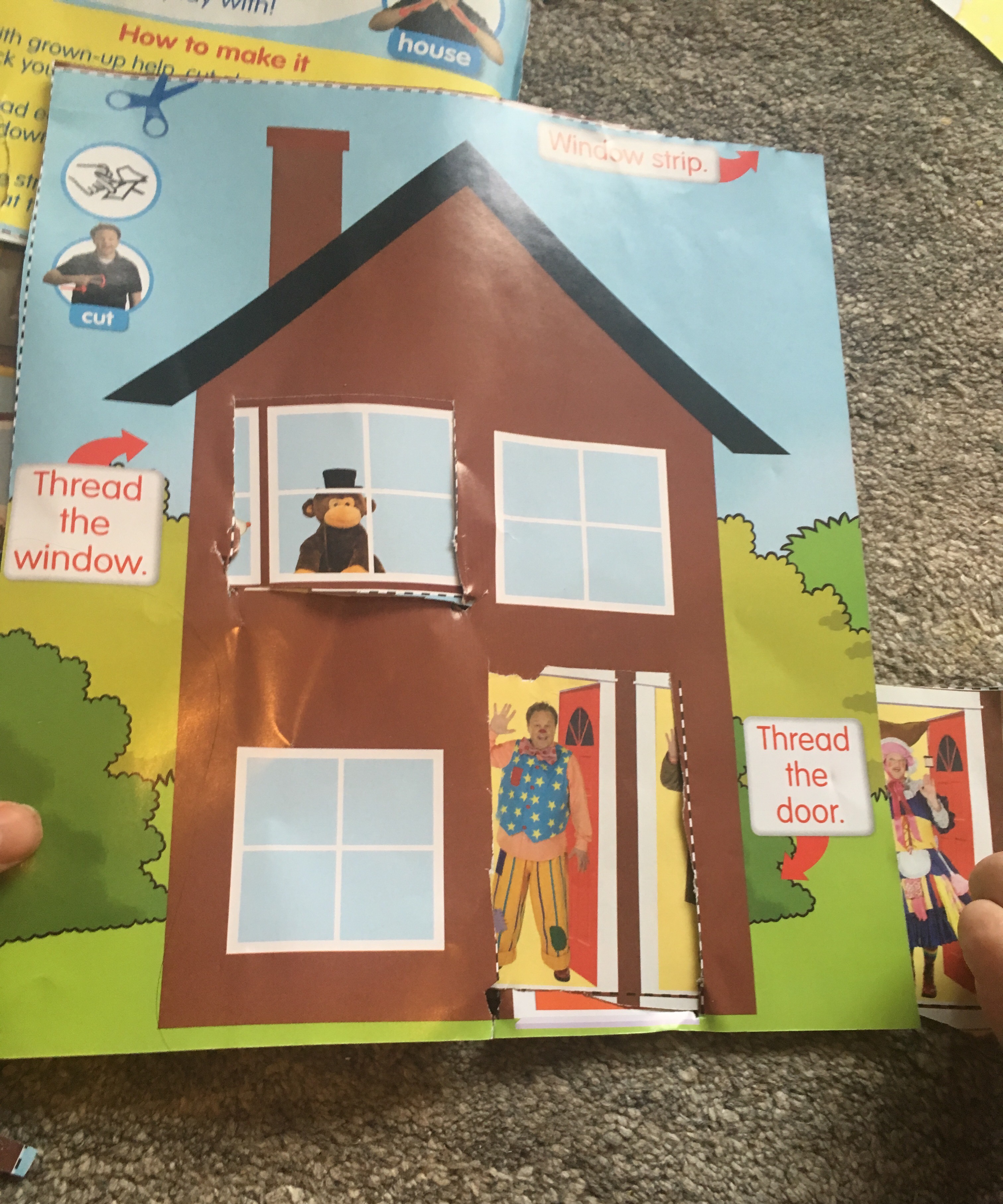 The craft activity of making Mr Tumble’s house to play with is also great for getting children to have a go with scissors.