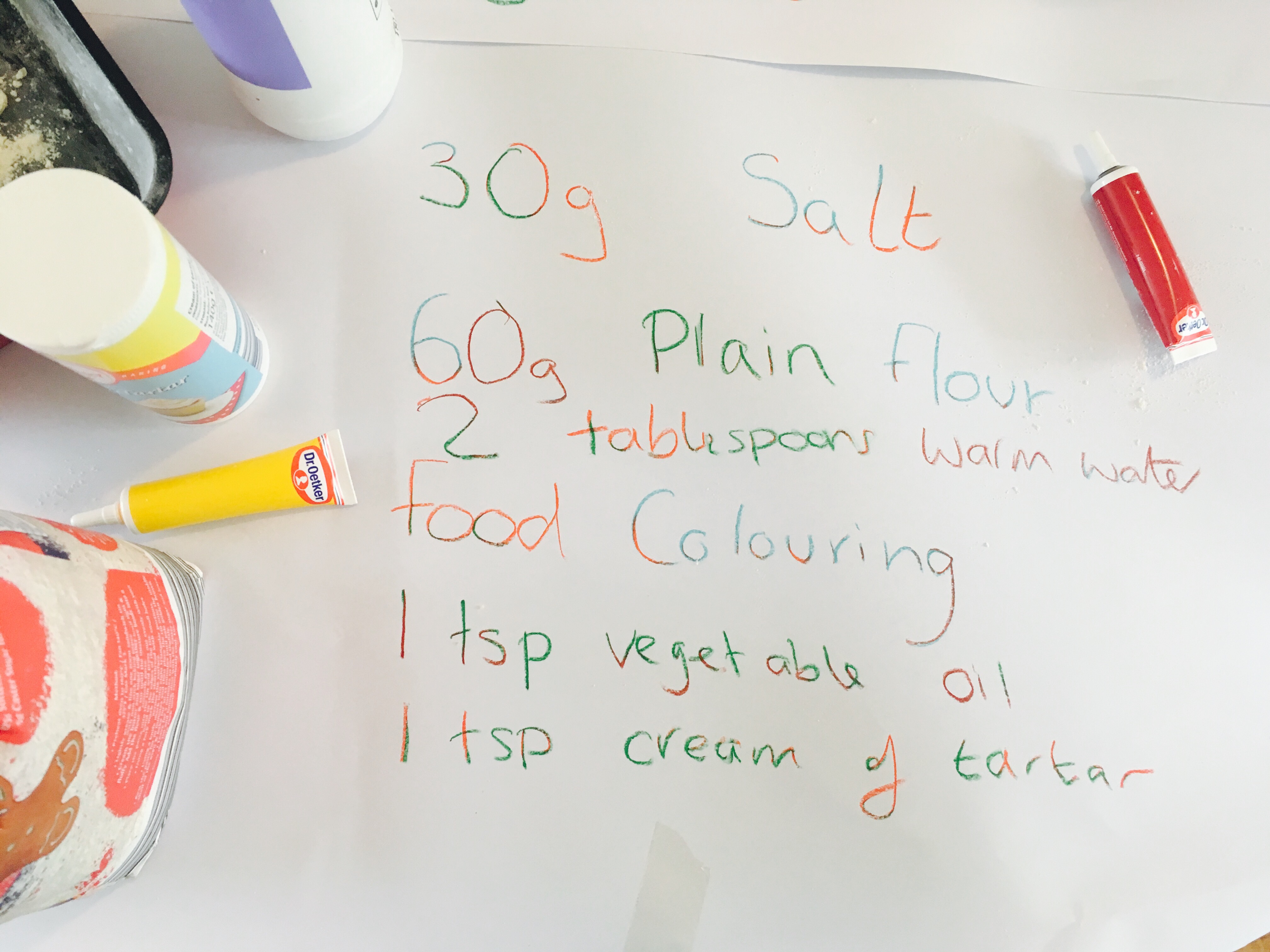 So here’s my tried and thoroughly tested recipe for home made play dough