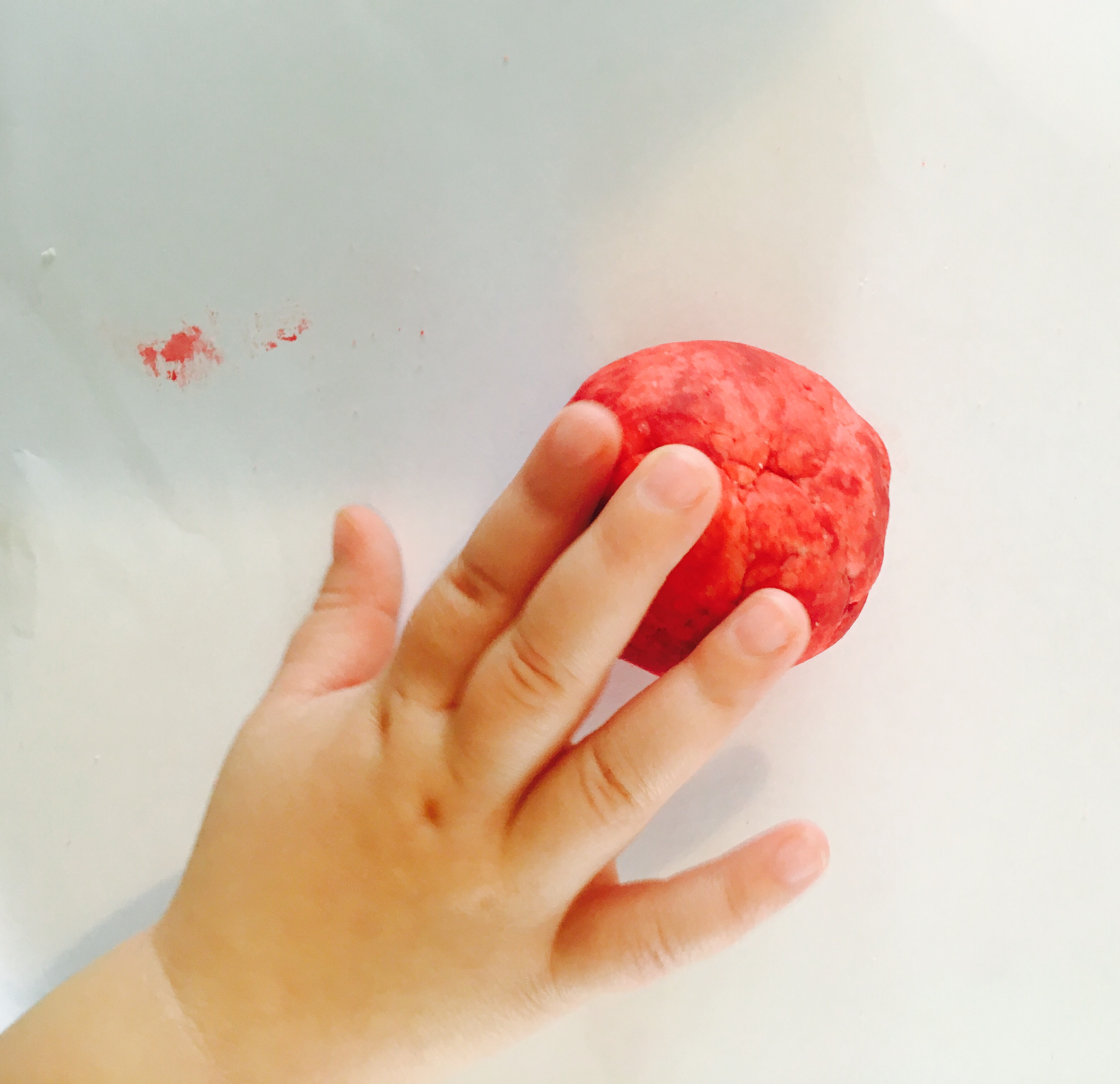 * We found that key to getting the right consistency was the amount of water and food colouring added. We’d recommend starting with two tablespoons of water and then once you’ve added the food colouring decide if you need more. If you decide to make a really deep red Play dough for example, you’ll need more food colouring and in turn not much more than 2 tablespoons of water. Whereas if you want a paler shade, you may only need a drop of food colouring and therefore more like 4 tablespoons of water.