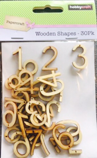 We used these Natural Wooden Numbers (30 Pieces) by Hobbycraft,that are a bargain at £2..