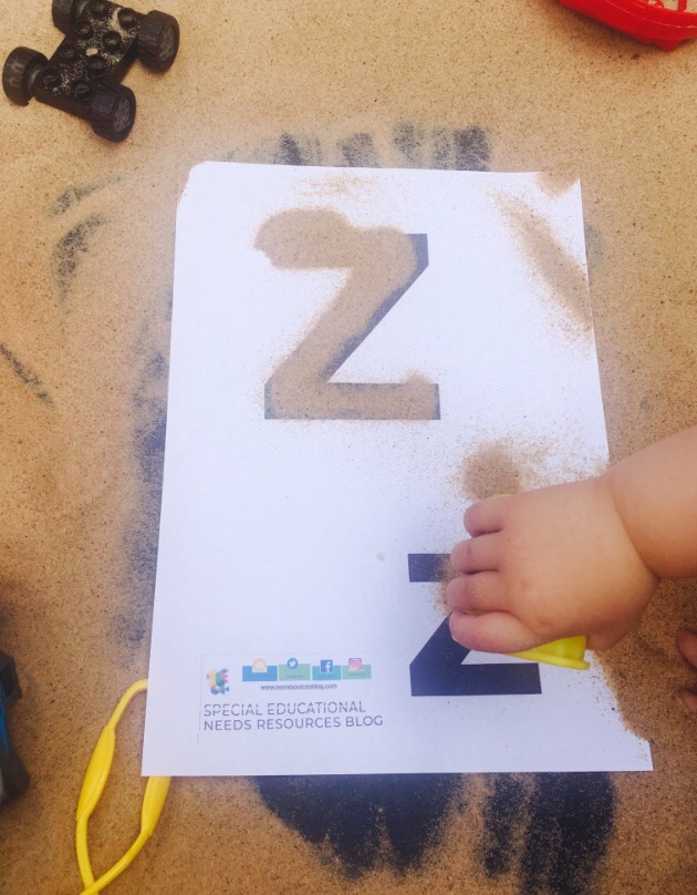- Sand- We are big fans of sand play. Children tend to love it too! You could get children to copy and write the numbers in the sand with fingers/paintbrushes/lollipopsticks. Or you could write the numbers on the base of the tray for children to draw over. Similar to our alphabet forming sand activity here (but with numbers instead of letters obviously!)