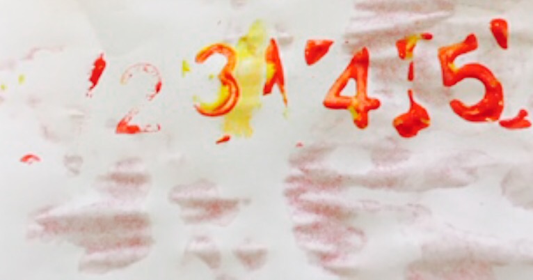 - They don’t need to always use pencils!– My best advice would be to mix it up a bit, writing with pencils can be important but at this stage it really doesn’t matter what they are using- so long as they are enjoying it and having a go. So get out the chalks and write on the patio, if you’ve got a whiteboard let them practise on that, or get crafty and use sequins/pom-poms/lollipop sticks etc to make the shapes of numbers (see how we did it with the alphabet here), paint numbers and it’s warm paint with water outside.
