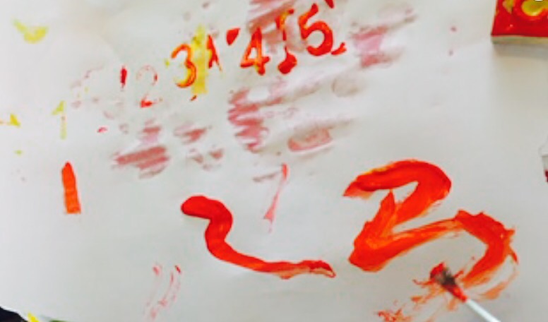 Using a paintbrush (to develop fine motor skills) the children then had to search for numbers.