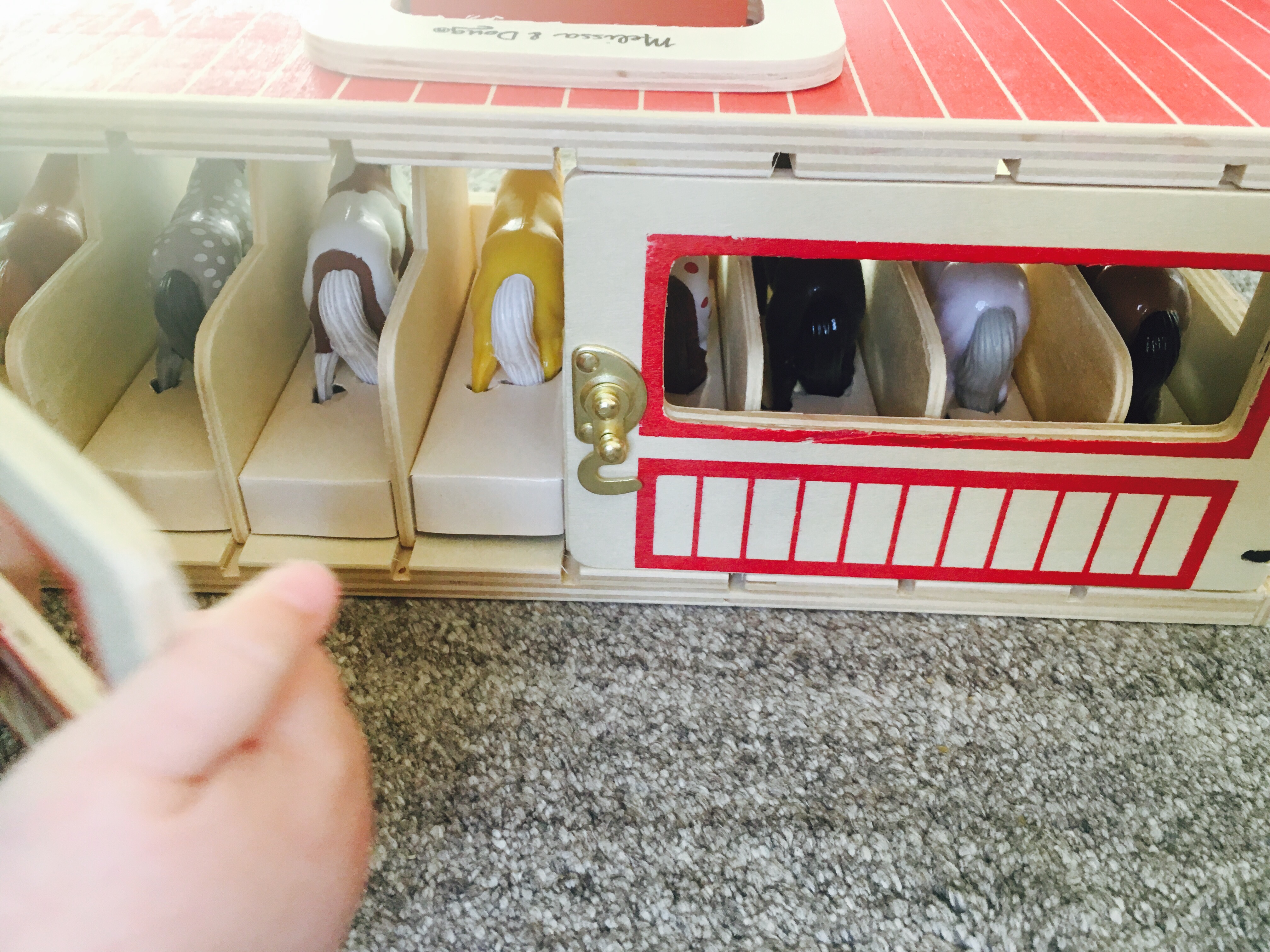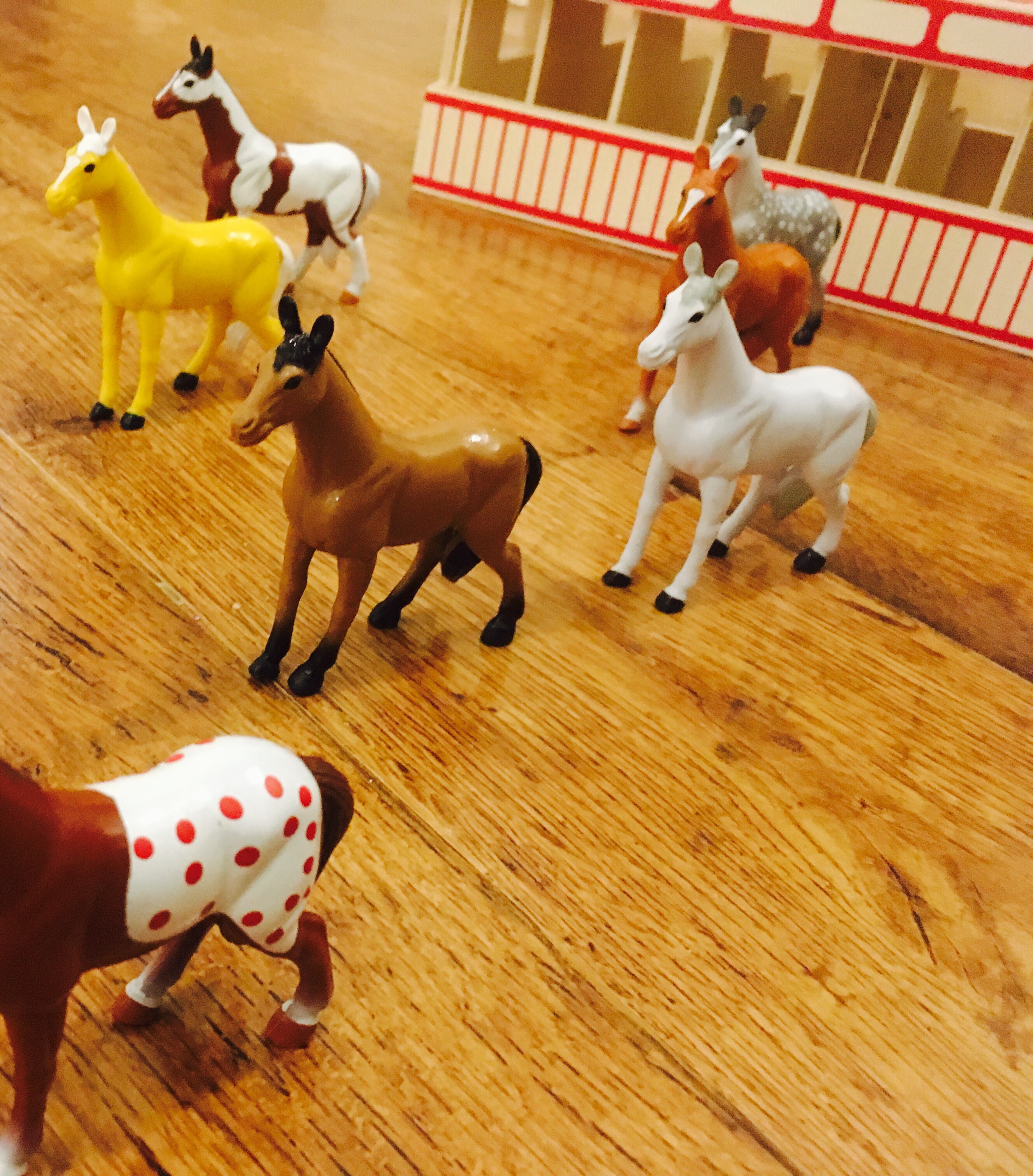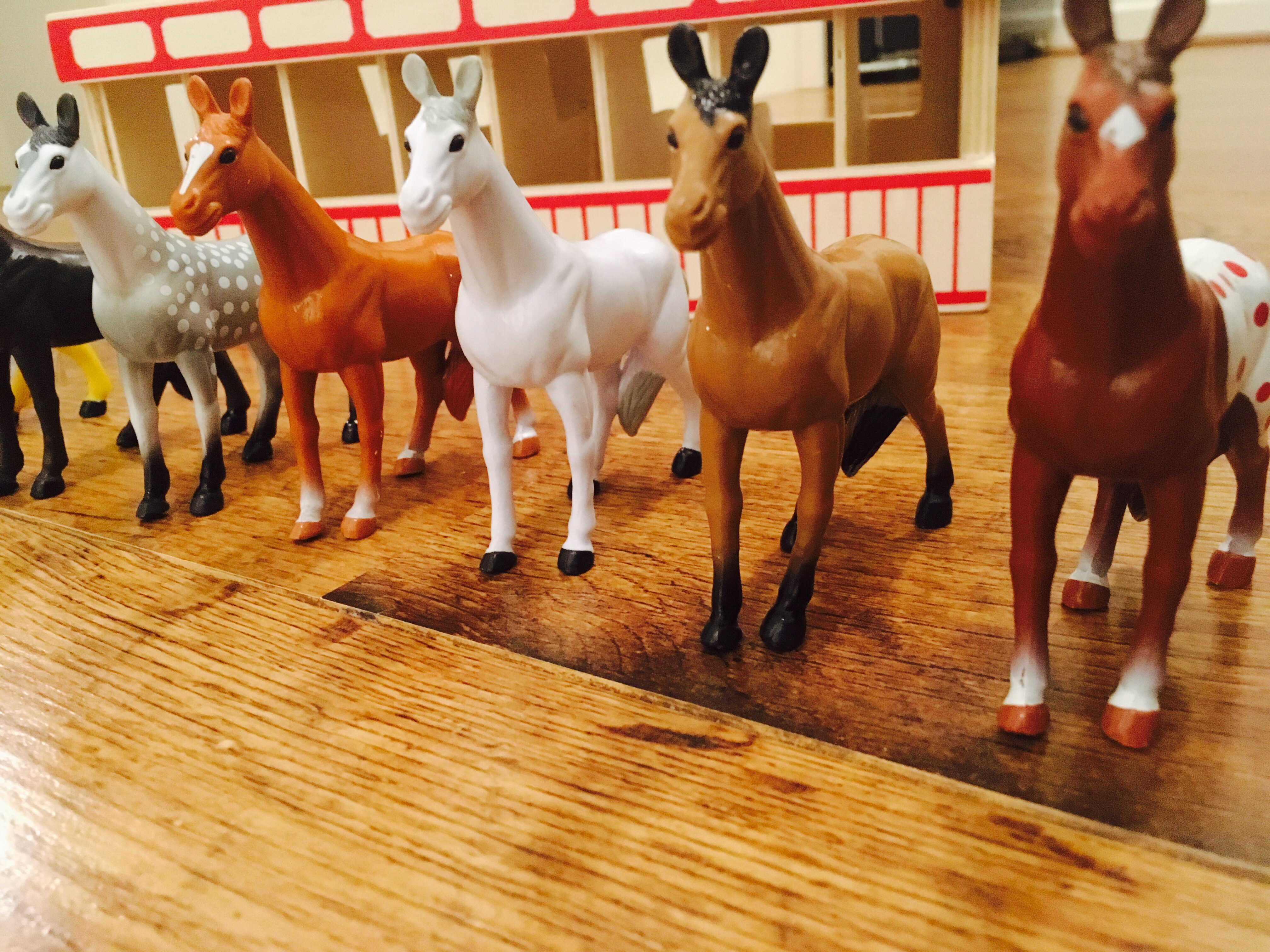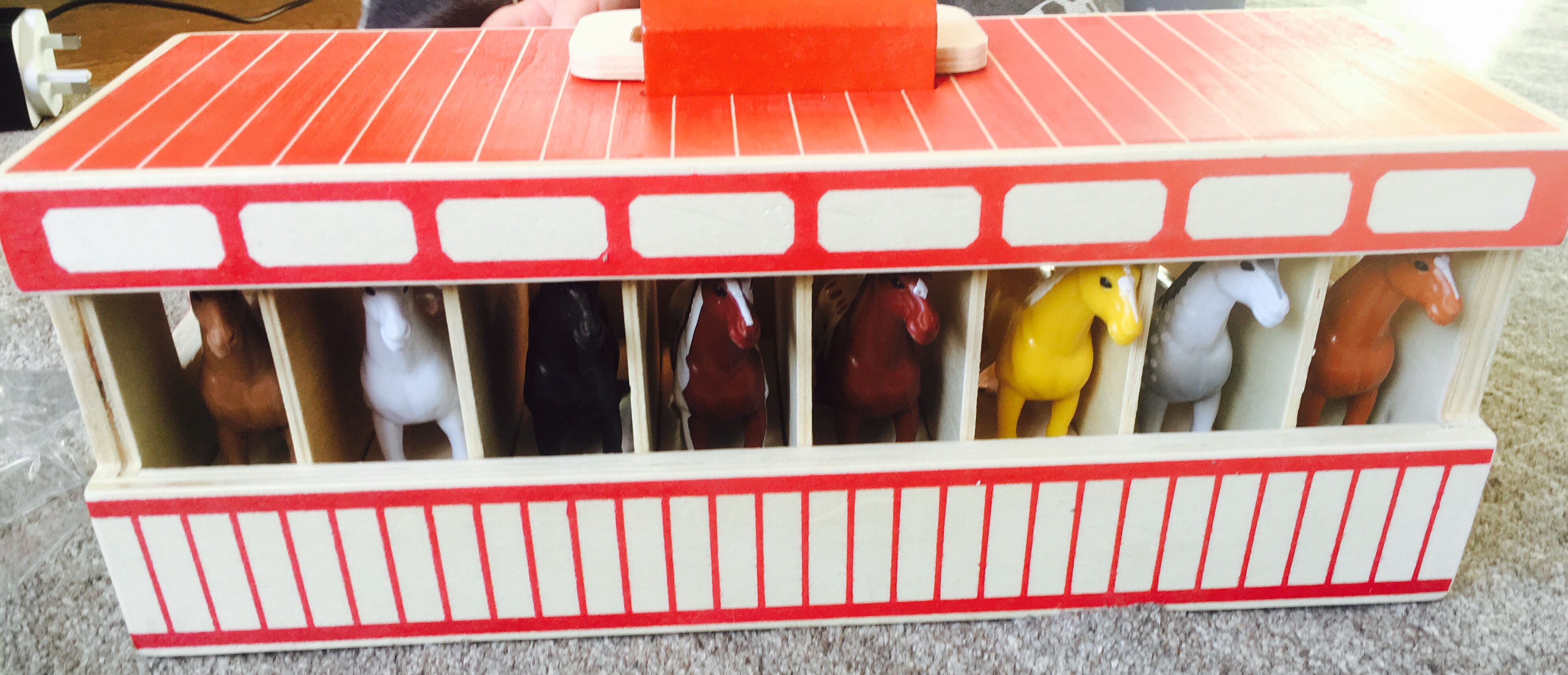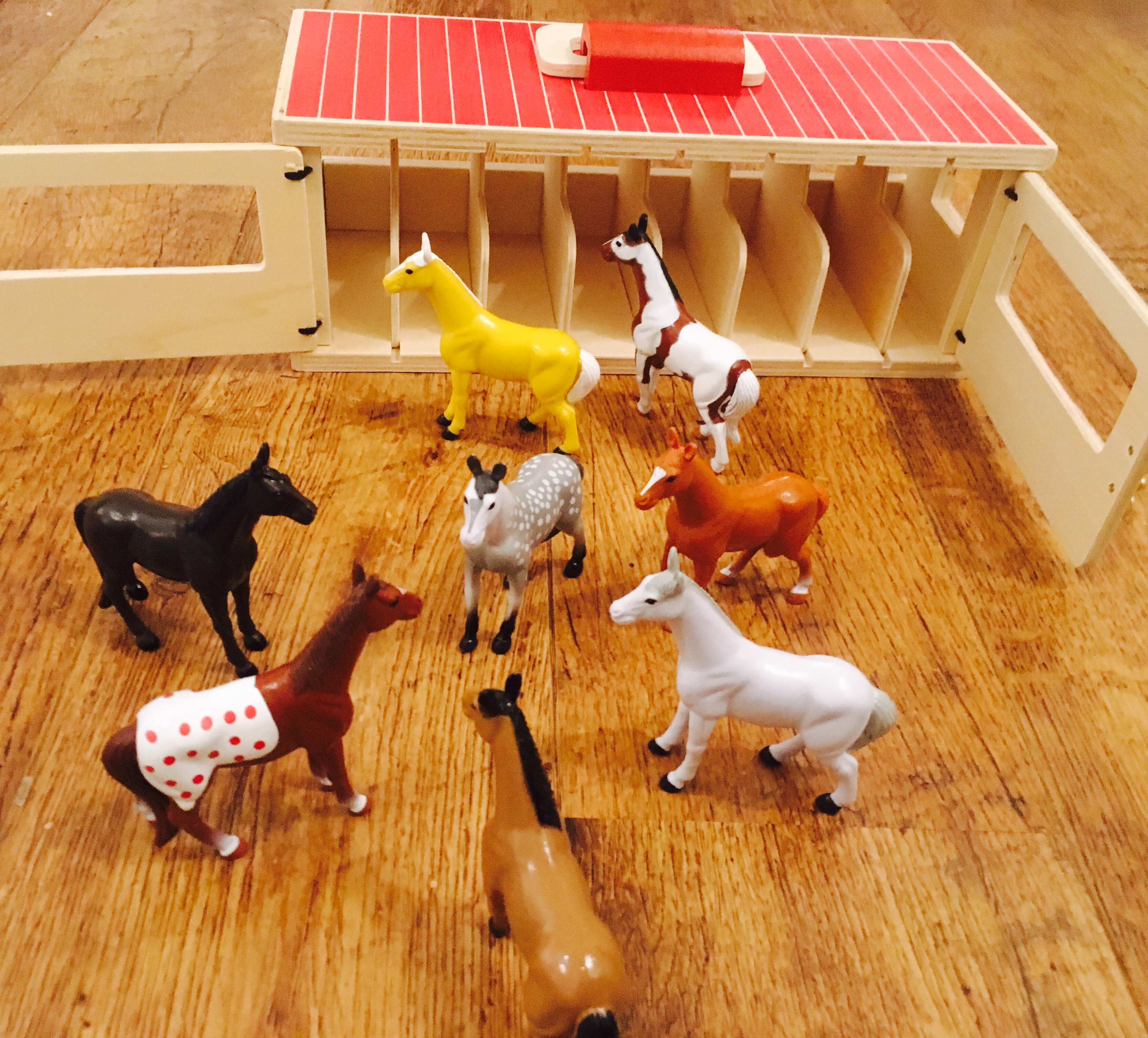 This week we’ve been playing with 8 absolutely gorgeous, toy race horses that come complete with their own stables.