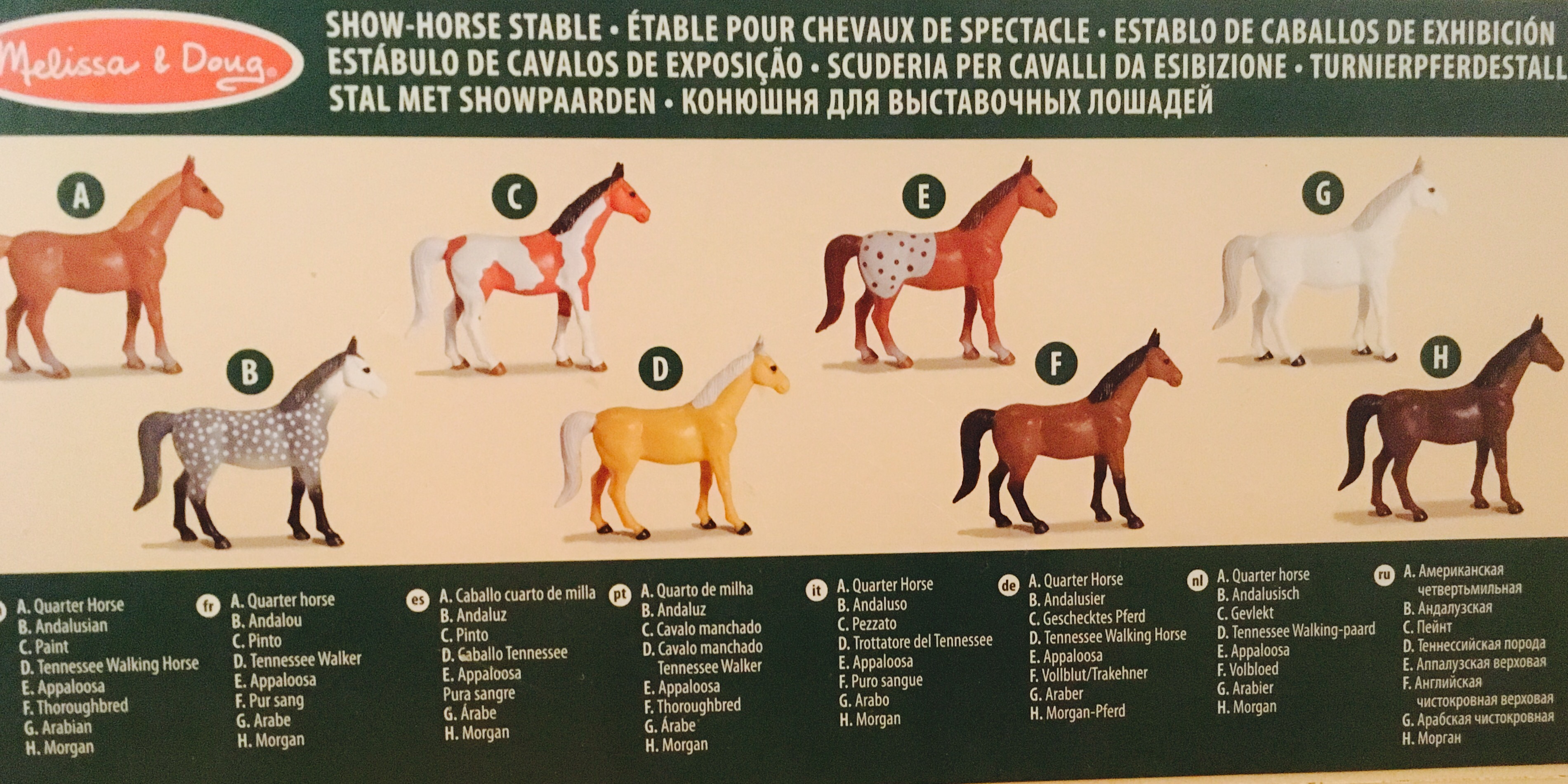 - Unique– What a wonderful idea race horses with stables is for a toy. The children loved how different it is to all their other toys- they’ve definitely never played with anything like it before. It also stimulated discussions about and learning of horses and the different breeds, what horses eat etc. Underneath the stables there’s even a handy guide to the breeds of the horses included to support learning.
