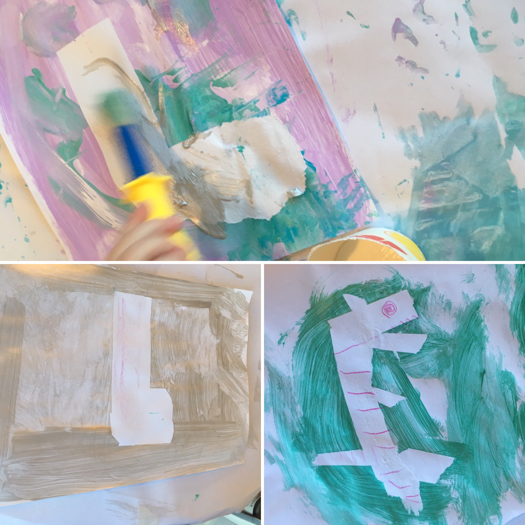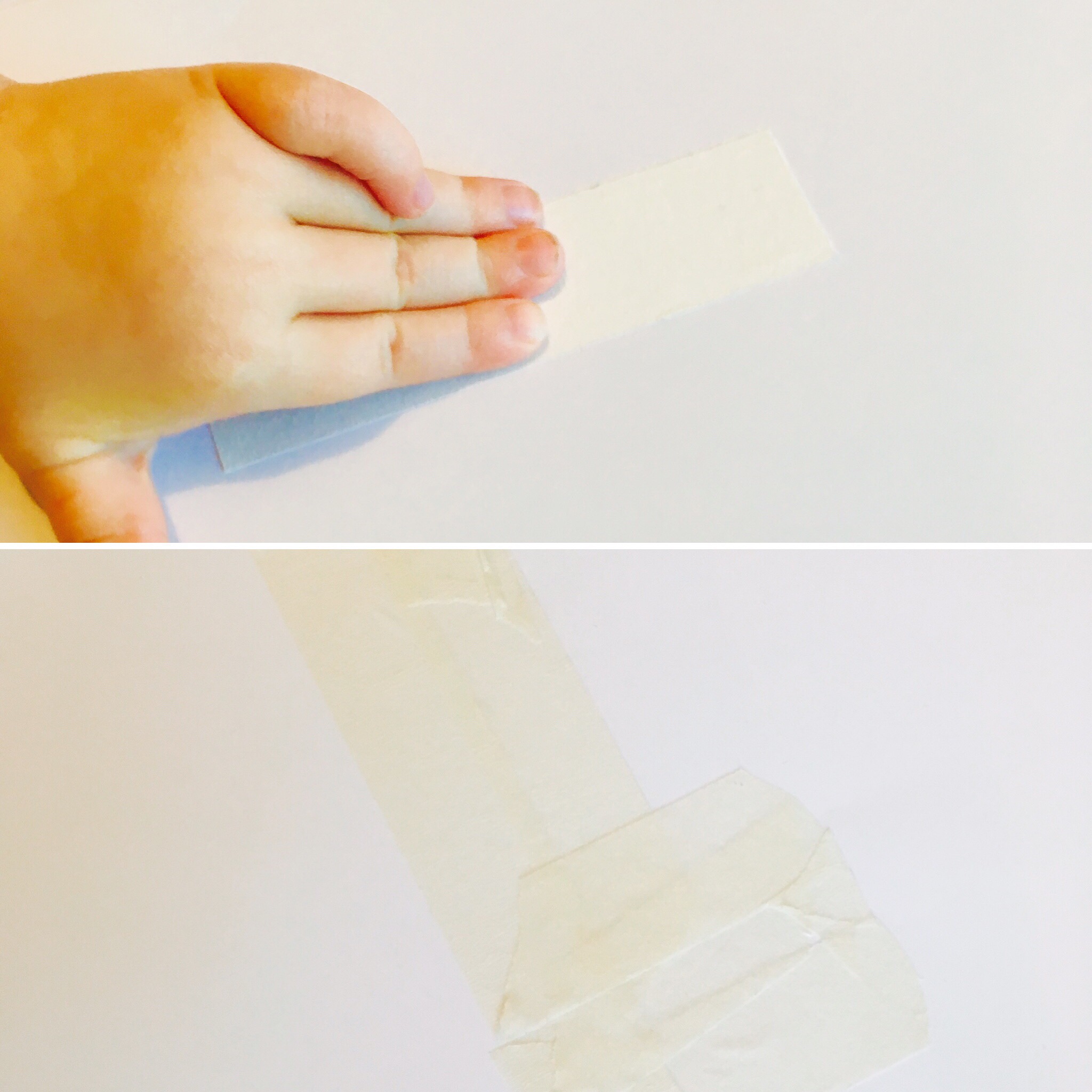 1.Either mask out the Shapes yourself using masking tape on paper, or if the child is able- encourage them to stick masking tape in the shape of a Christmas picture onto the paper.