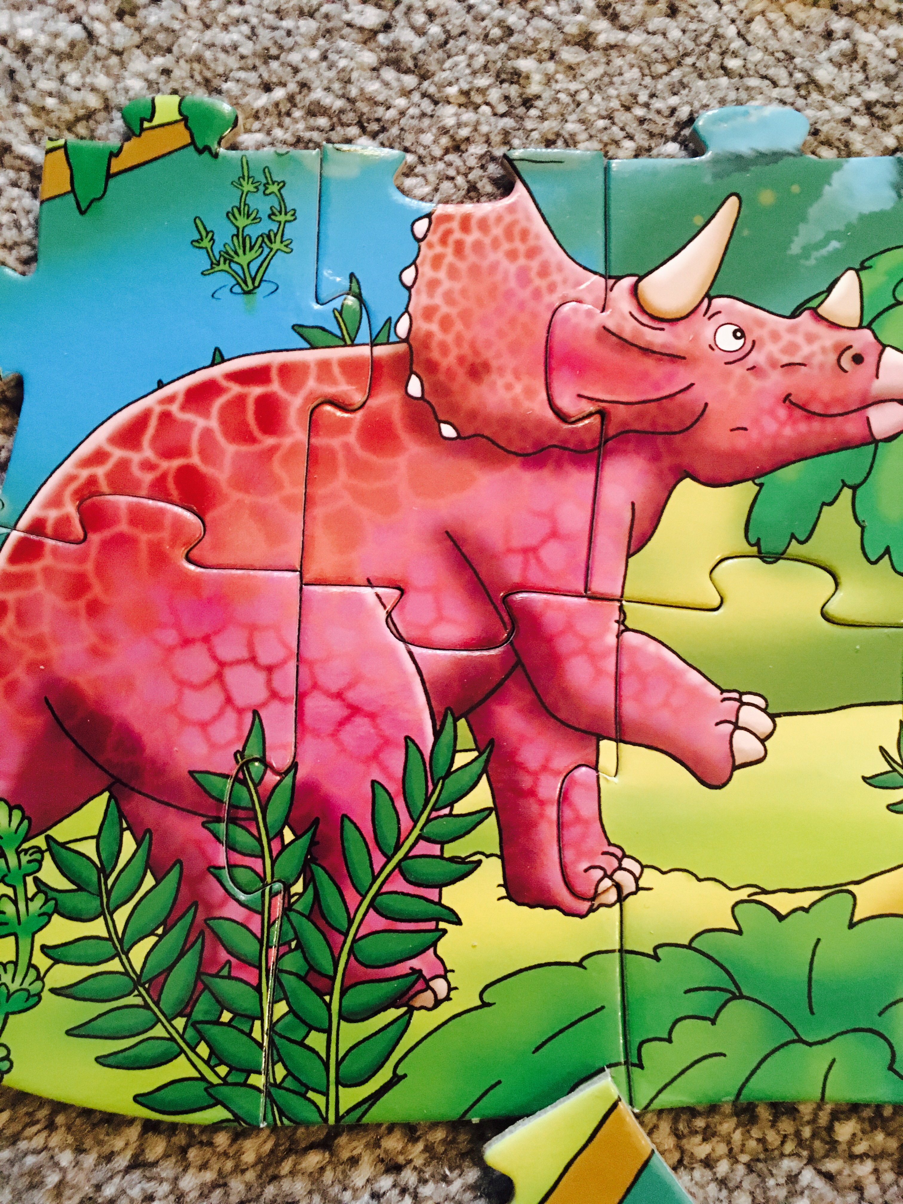 - Educational- We loved the educational value of this puzzle, on the box of the puzzle there is lots of information about the dinosaurs featured and the different periods of time they were around. This helps to further enrich children’s play by developing their knowledge of dinosaurs.
