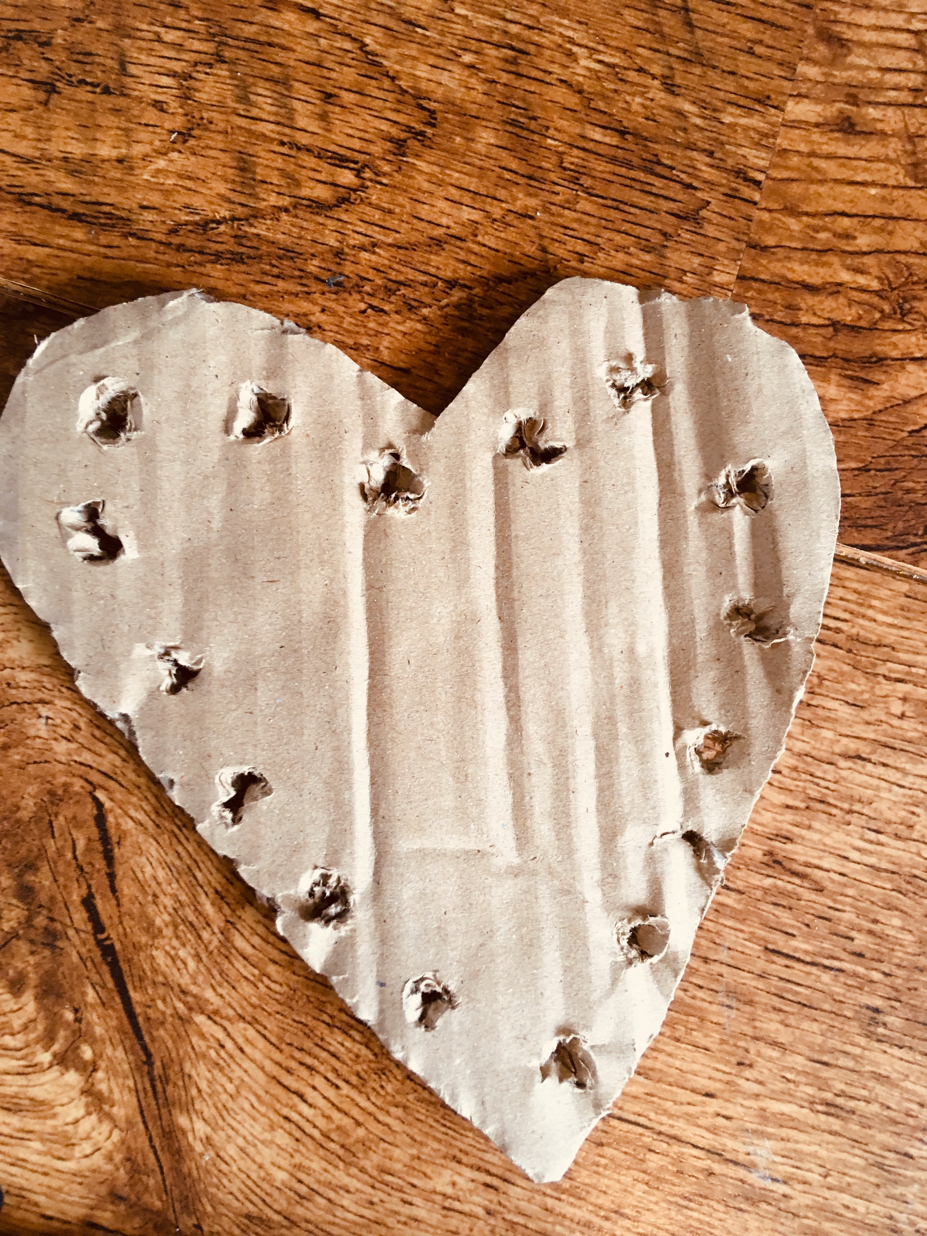 - Adult to make holes around the edge of the cardboard heart ideally using a hole punch
