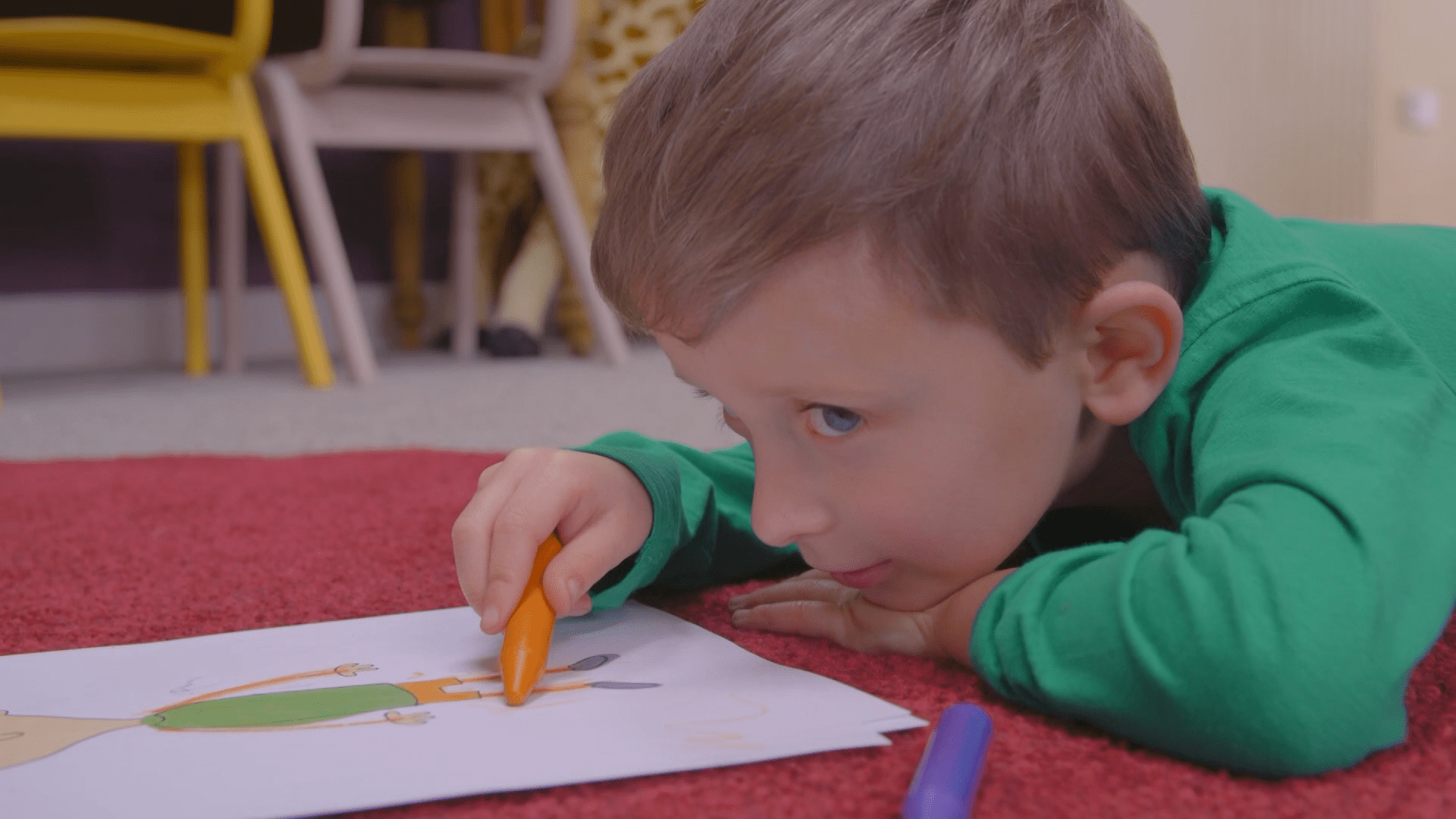 - Enjoyable to Watch– Most importantly, the children really enjoyed watching it and were desperate to watch more and more episodes. Enjoyment is absolutely crucial with children’s TV programmes, as there’s no point having a series with fantastic messages like this one about inclusion, if no one watches it. The kids loved the mix of live-action and animated scenes. The cartoon characters are colourful, beautifully drawn and fun. They also cleverly depict the imaginary world that Pablo has created using his crayons. This world and it’s characters help him to make sense of any difficult situations that might arise. The children learnt so much from listening to the different characters perspectives and their ideas of how to solve tricky situations. It not only provided them with tools themselves to deal with similar situations, but fostered empathy for others who might find some situations more challenging. During one episode, for example, Pablo hears a strange noise from his room and goes into his imaginary world to ‘work out’ what this noise could be. Whilst watching this, we saw the children guessing too about what the noise could be and why it might be upsetting Pablo so much. It was lovely to see them emphasising with Pablo and his worries.