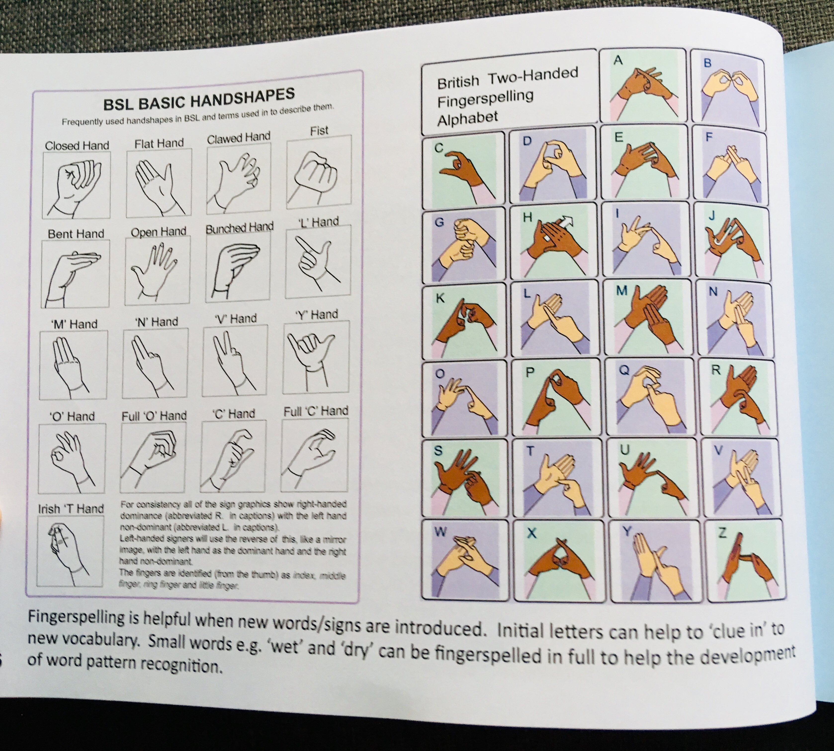 - Extras – The BSL Baby Sign Link Book also includes a page on BSL hand shapes and british two-handed, finger spelling alphabet.