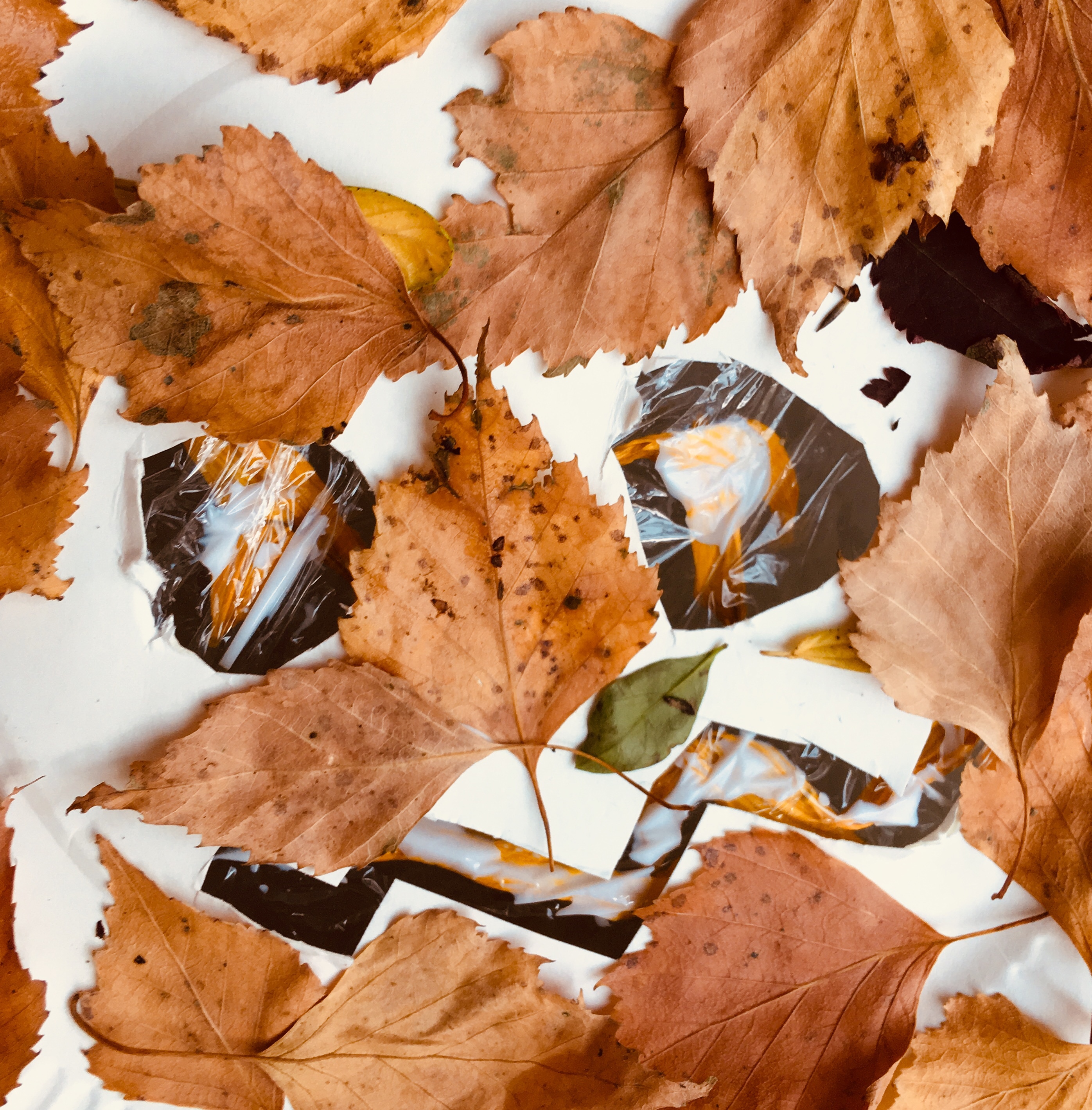 An alternative, less scary idea includes just cutting a large circle out of the paper plate, sticking on the clingfilm and letting the children glue leaves to it to make a leaf sun catcher!