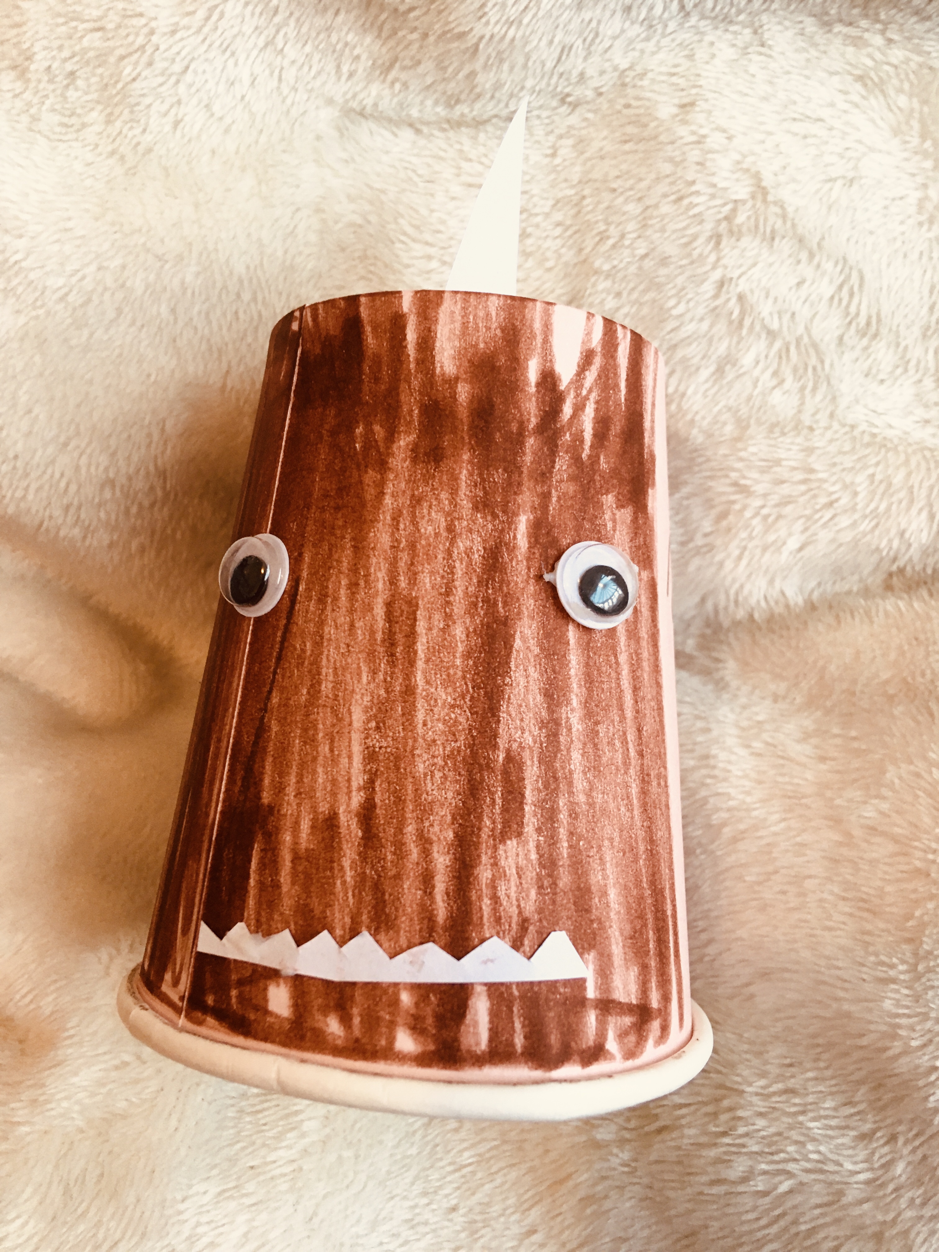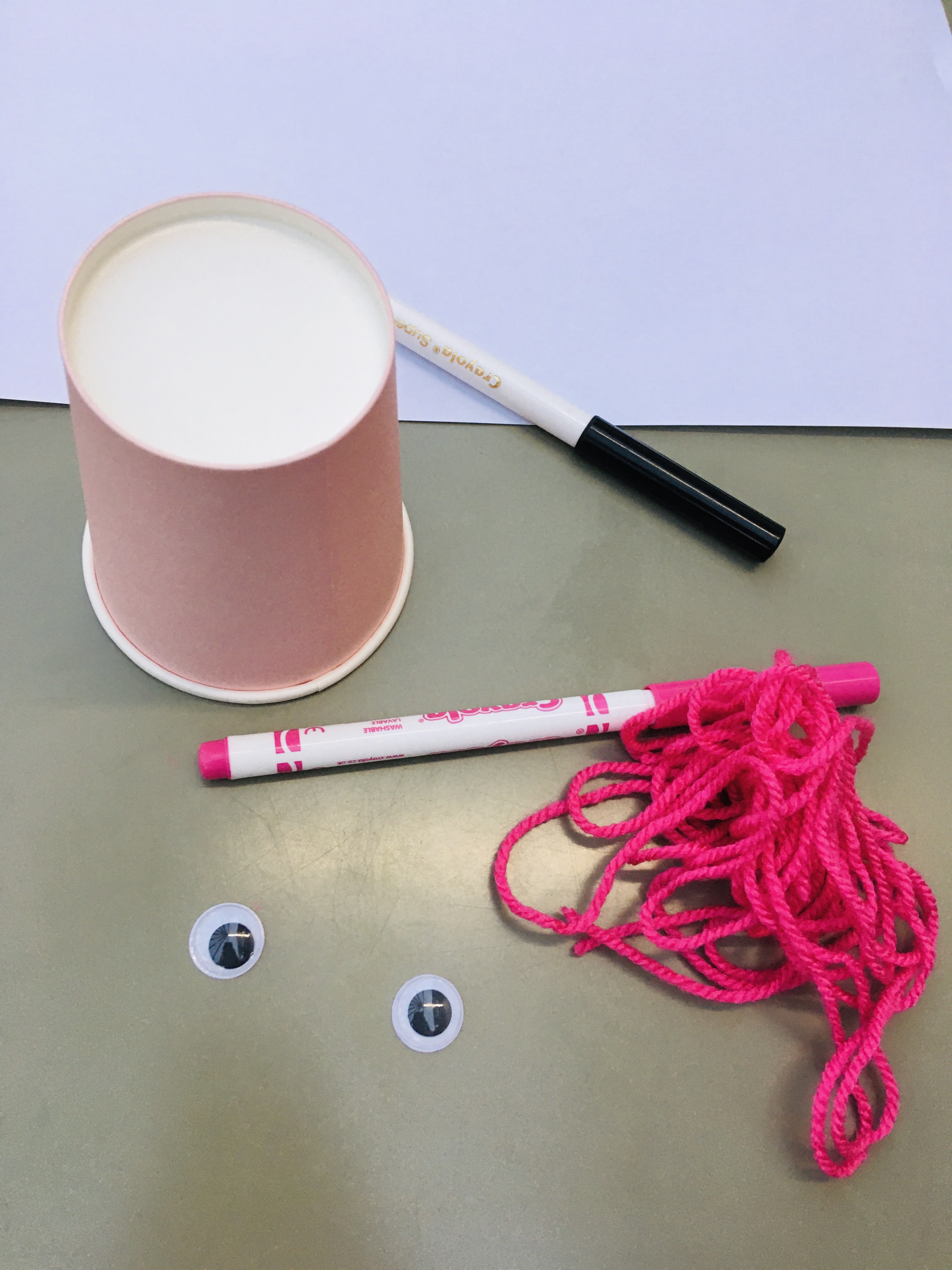 - Draw a nose and mouth on the paper cup