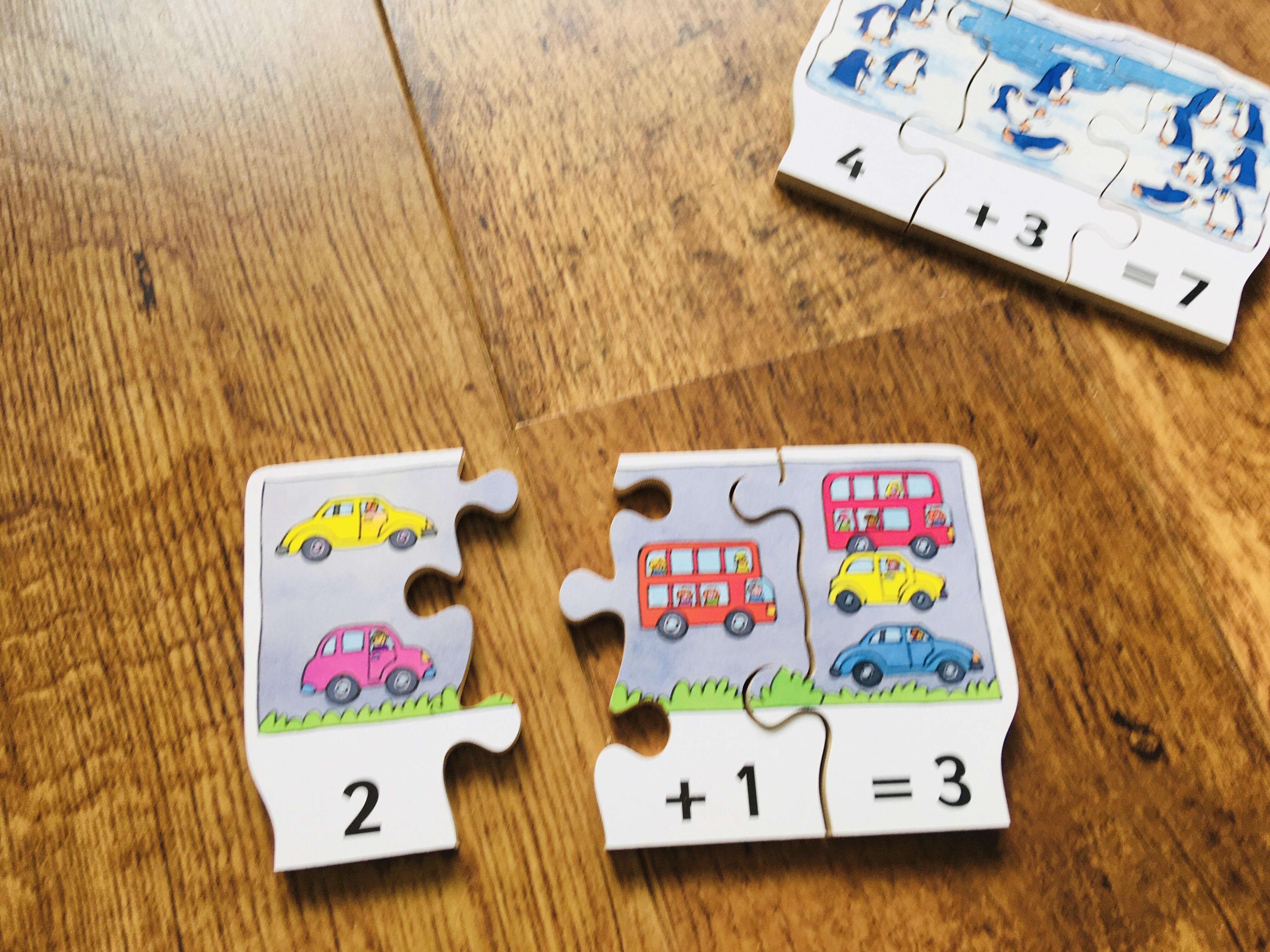 - Appeals to Kids- The children adore this puzzle. It’s bright, colourful and chunky! The pictures are perfectly pitched at young children- with animals, ice creams and vehicles. It’s a really fun and engaging way of practising basic addition sums.