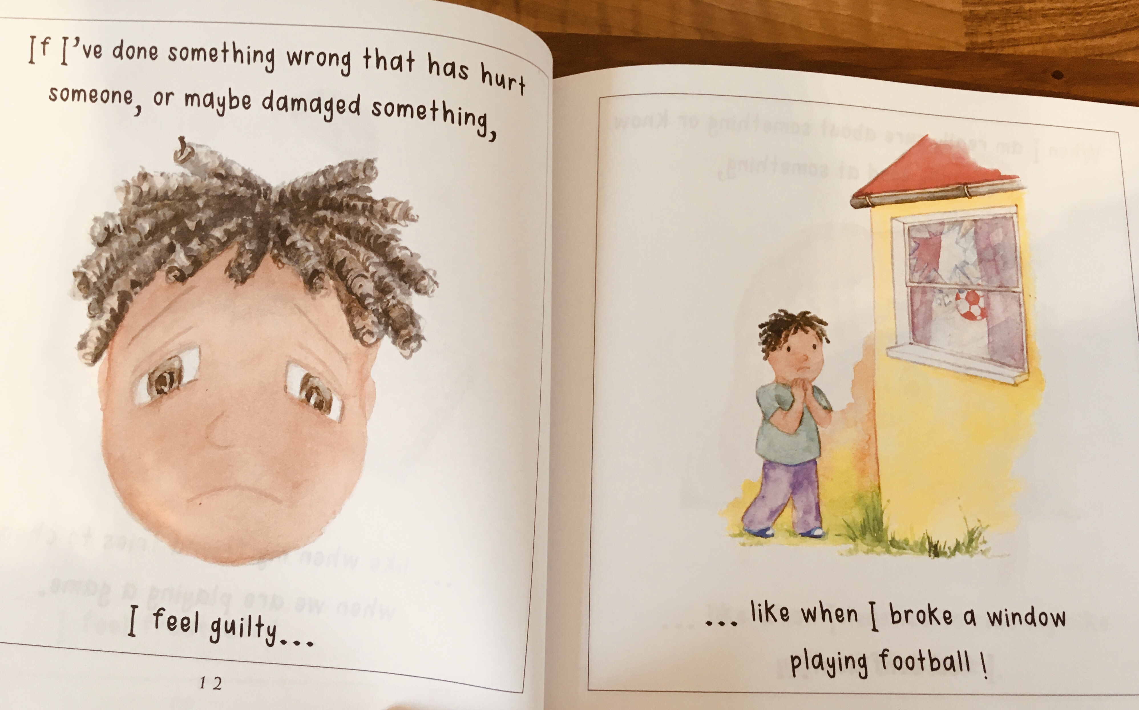 As the name suggests this book provides children with the vocabulary to explain even more emotions for example: frustration and guilt. And it does so in the same lovely warm, friendly, gentle way as the first book. On each double spread of the book it features an emotion and includes a drawing of a child feeling that way and an example of why.