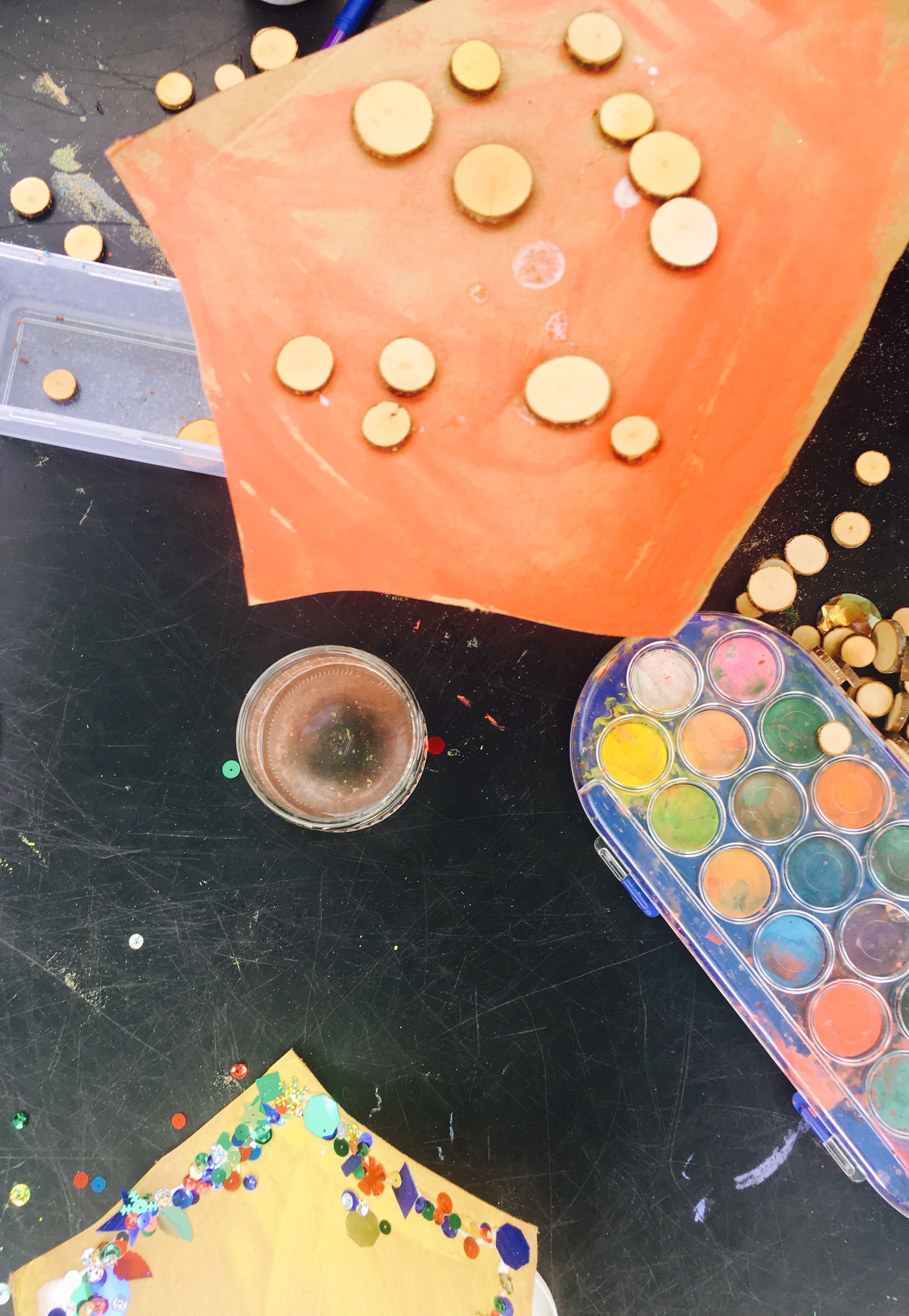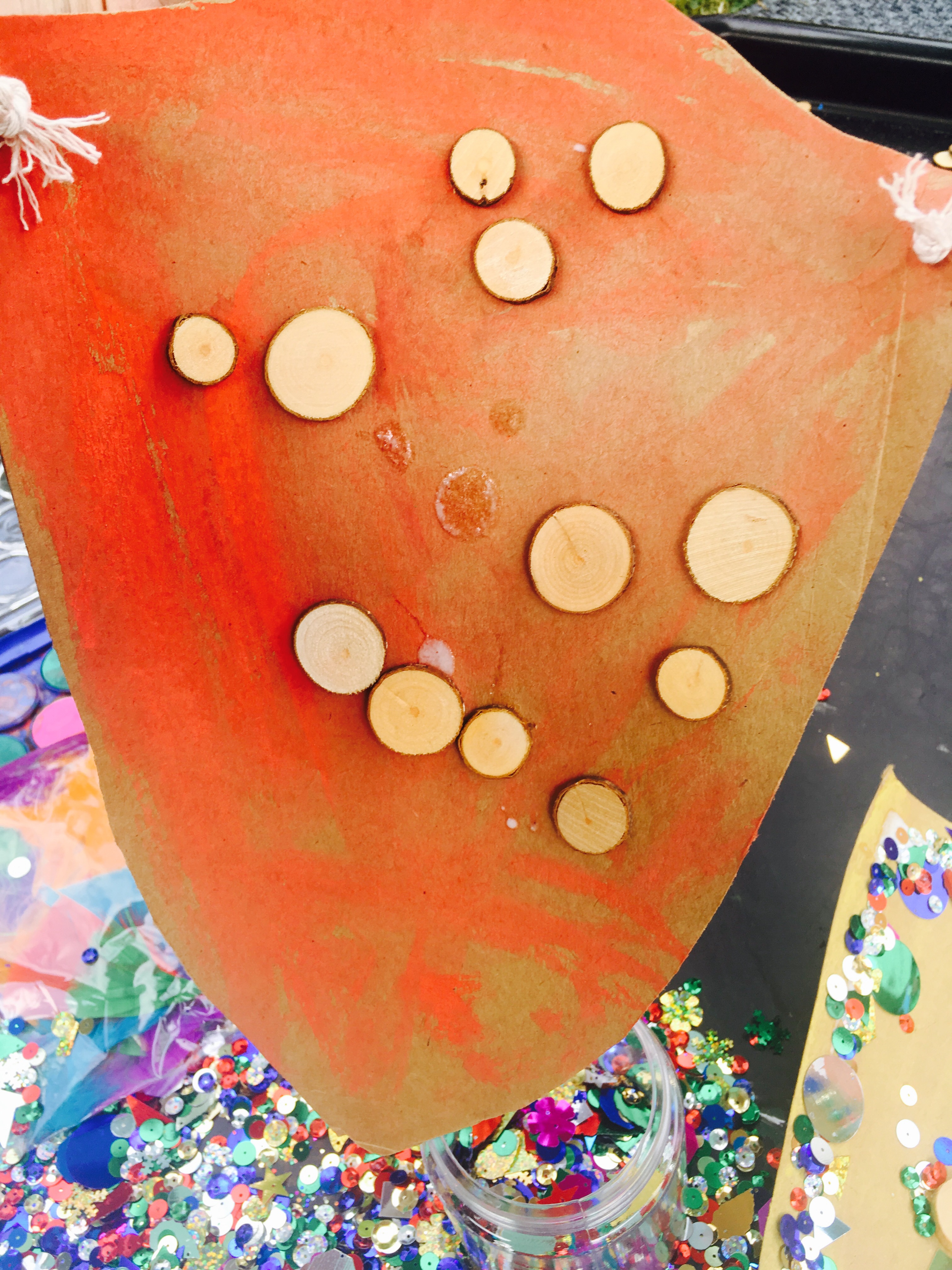 - Use glue and sequins, gemstones, wood pieces etc to stick on.