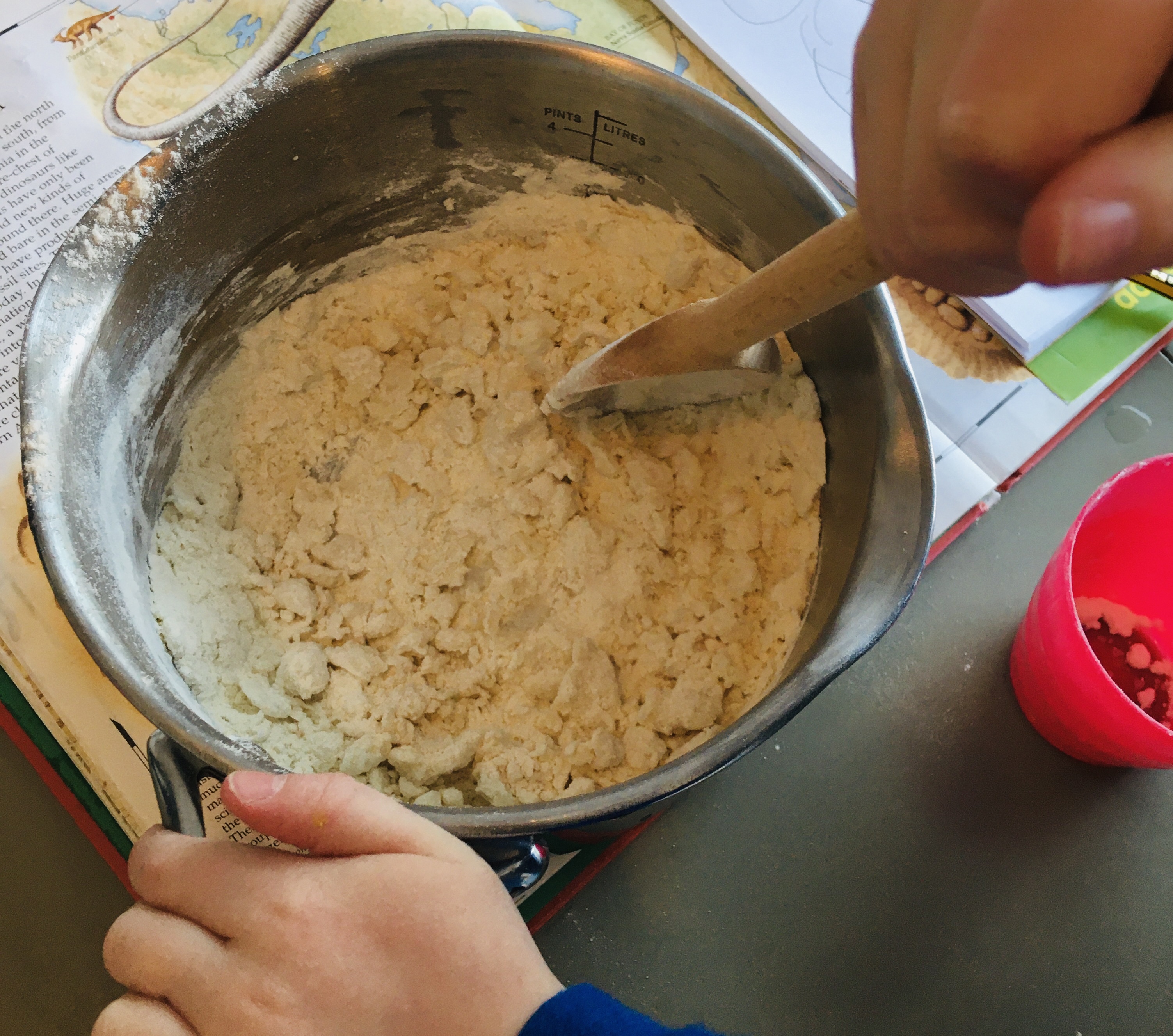 - Make it into dinosaur bone shapes (we did a bit of research and drawing first using a book)