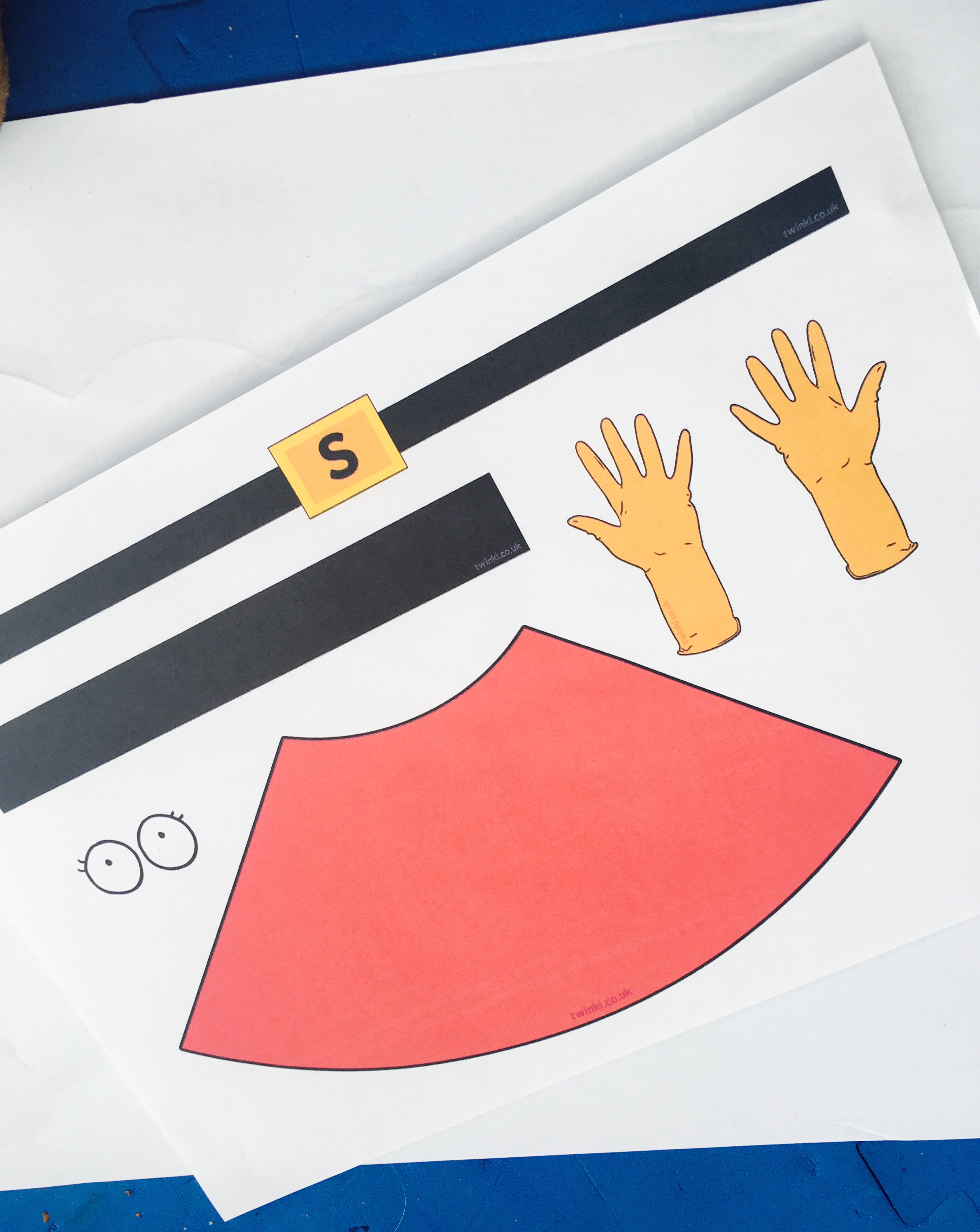 - Develop Scissor Skills– Using scissors correctly and safely is an important skill for children to master. This activity provides lots of opportunities for children (under supervision) to use scissors- cutting out the various parts of super potato’s costume.
