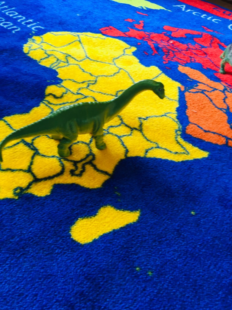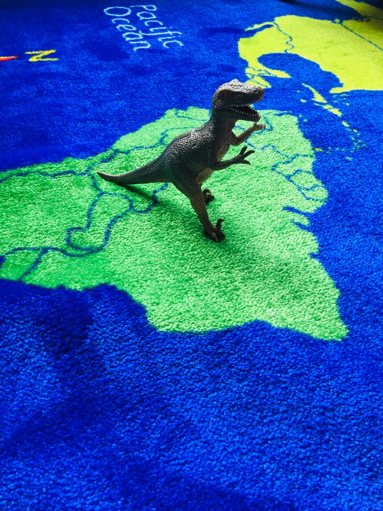 - Fantastic for Small World Play– As many of you who read my blog know, I’m a huge believer in learning through play. This carpet is absolutely wonderful for enriching a child’s play whilst slipping in some Geography knowledge! We’ve been loving playing dinosaurs on it, for example, discussing which continents each dinosaur may have lived in and how different the continents look now to how they did then.