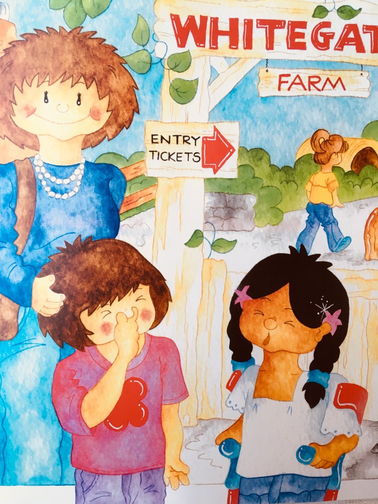A Day at the Farm is a lovely tale of two friends, Hattie and Nisha, who have a day out visiting a farm together. It is part of a series of books called Hattie and Friends Books, written by Lesley Berrington. Lesley is a former owner of a nursery and after a course on Disability Discrimination she noticed that very little children’s books have a character with a disability as part of the story. She therefore decided to solve this problem by writing a series of books to meet the demand for inclusive children’s books.