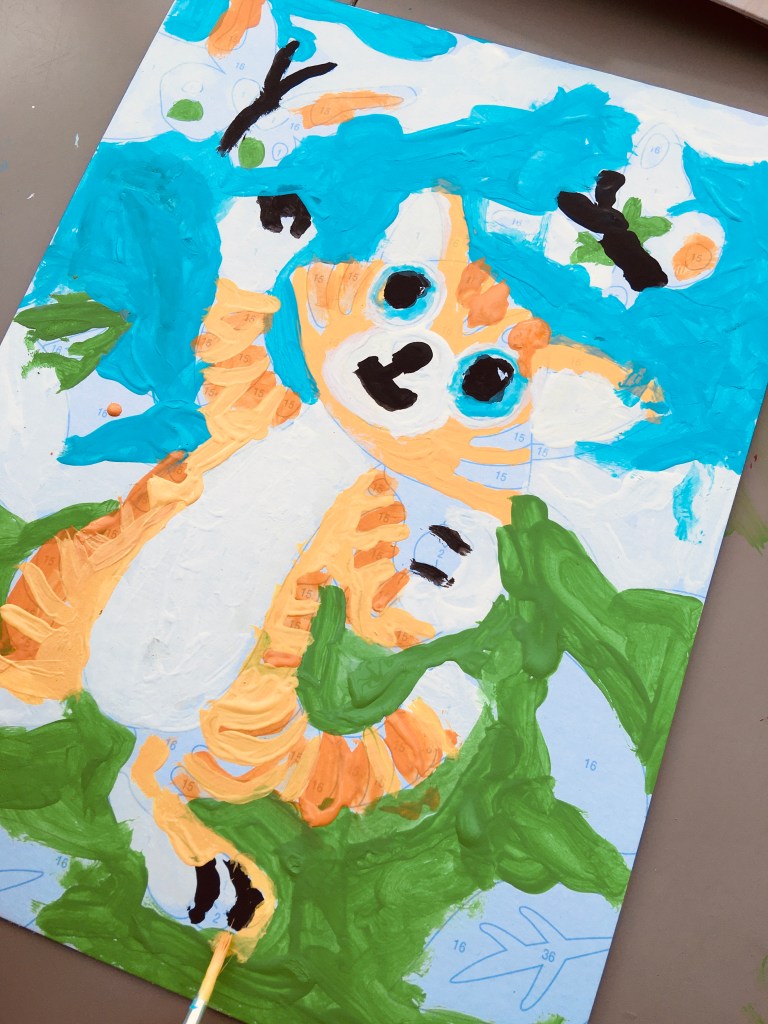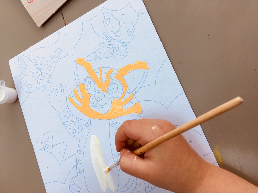 - Doesn’t matter if they ‘go wrong’ – I particularly love that it really doesn’t matter if a child ‘goes wrong’ whilst doing the paint by numbers. Often it adds to the charm of the final picture. But also, if they didn’t want the mistake to be seen, as the paints dry really quickly, they can just paint over it with the correct colour. This is fantastic again for self esteem and confidence.