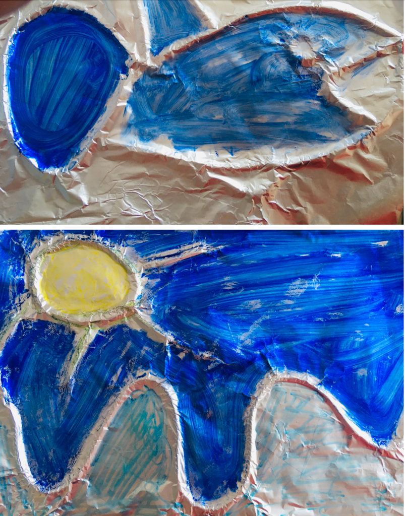 - Under The Sea Themed Foil Art– This is a wonderful, sensory activity that many children will enjoy! It looks beautiful when it’s complete too.