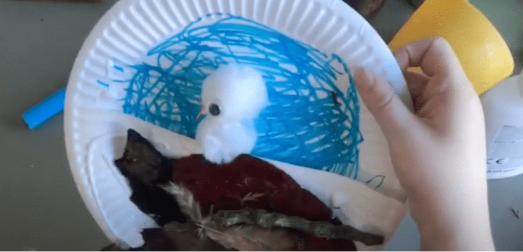 - Ask them to stick the tiny pieces of magazine onto the bird.