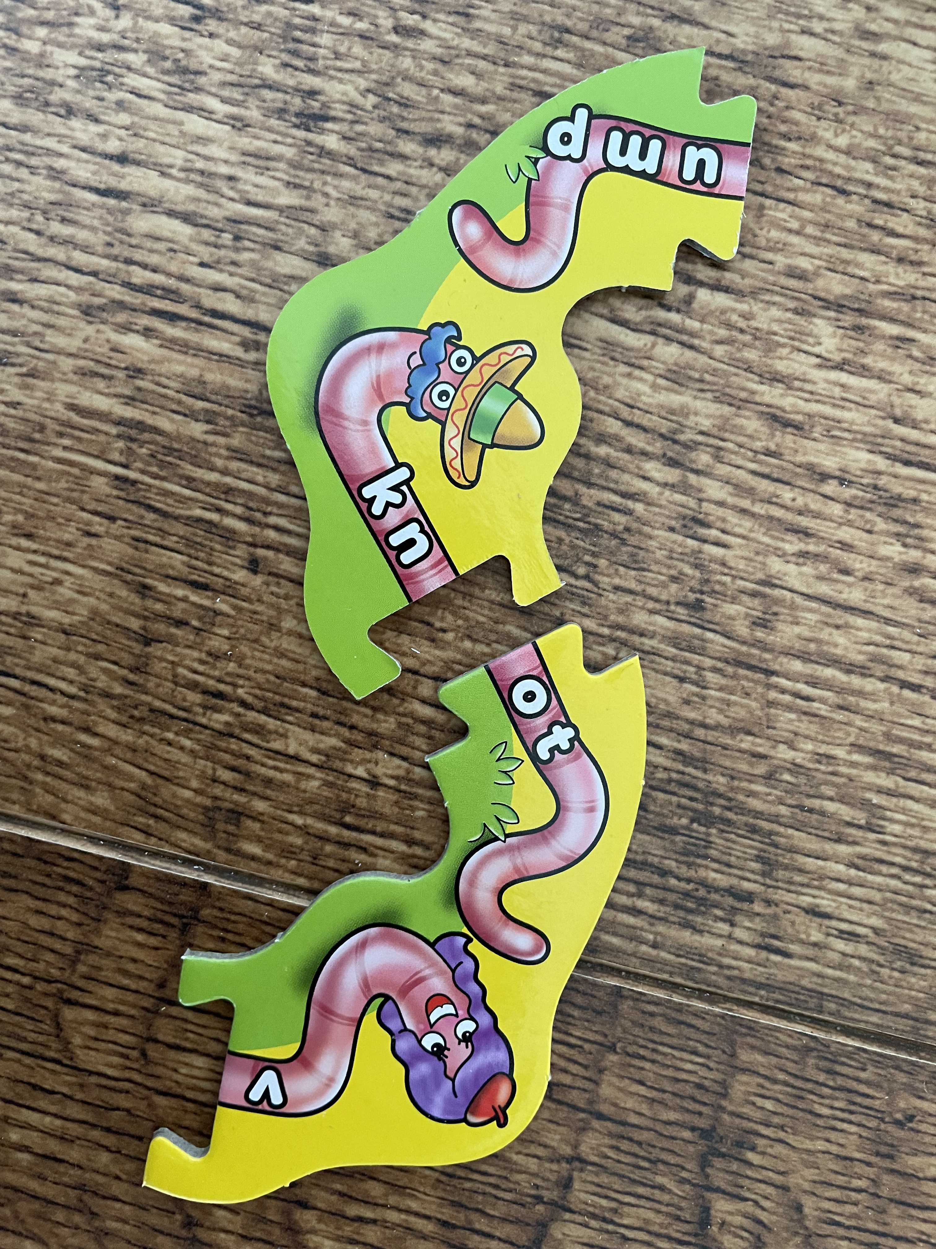 Wiggly Words – This game is brilliant. It’s a really great way of giving children time to practise spelling and forming words without just writing down their weekly list of spellings on some paper (which lets face it…is boring!). To play, the children have to connect two worms together to make a word. The head of the worm has the start of a word written on it, so it might just be a letter like ‘m’ or it may be a digraph like ‘ch’ and then they have to find the body of another worm that can join to it to make a word. So it might be that they find ‘m’ for the head and ‘an’ for the body to make the word ‘man’. They keep connecting the worms until they’ve made a long length of puzzle. They can do this game by themselves, with family/friends and they could race if they wanted to. For dyslexic children, I’d recommend not racing against others but letting them try and see how many words they can make up in their own time. What I love about this game is it gets children thinking and remembering how words are formed, whilst playing! I’d recommend this for children ages 6+.